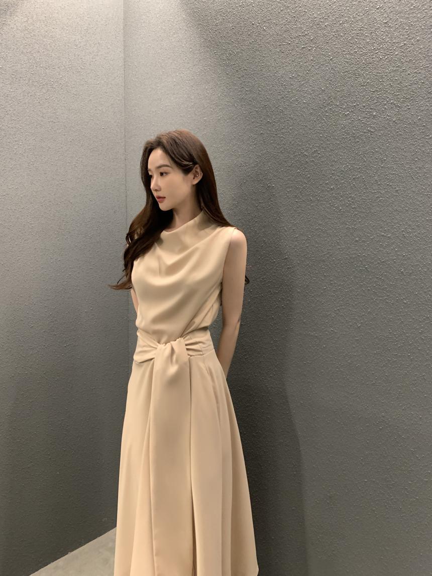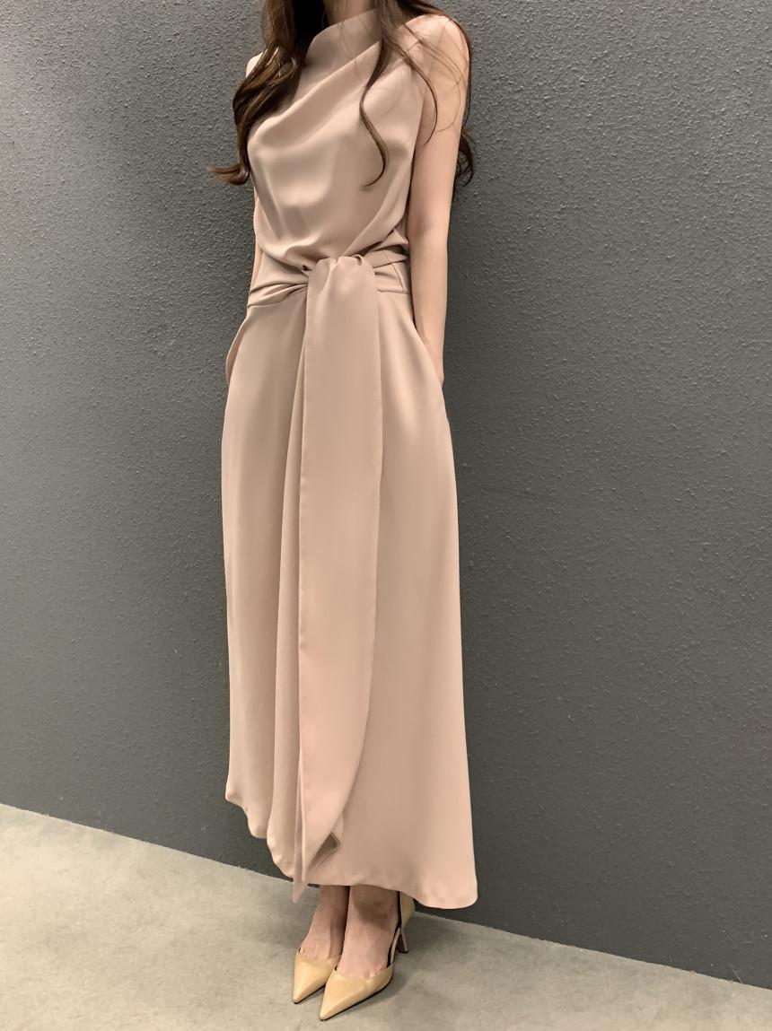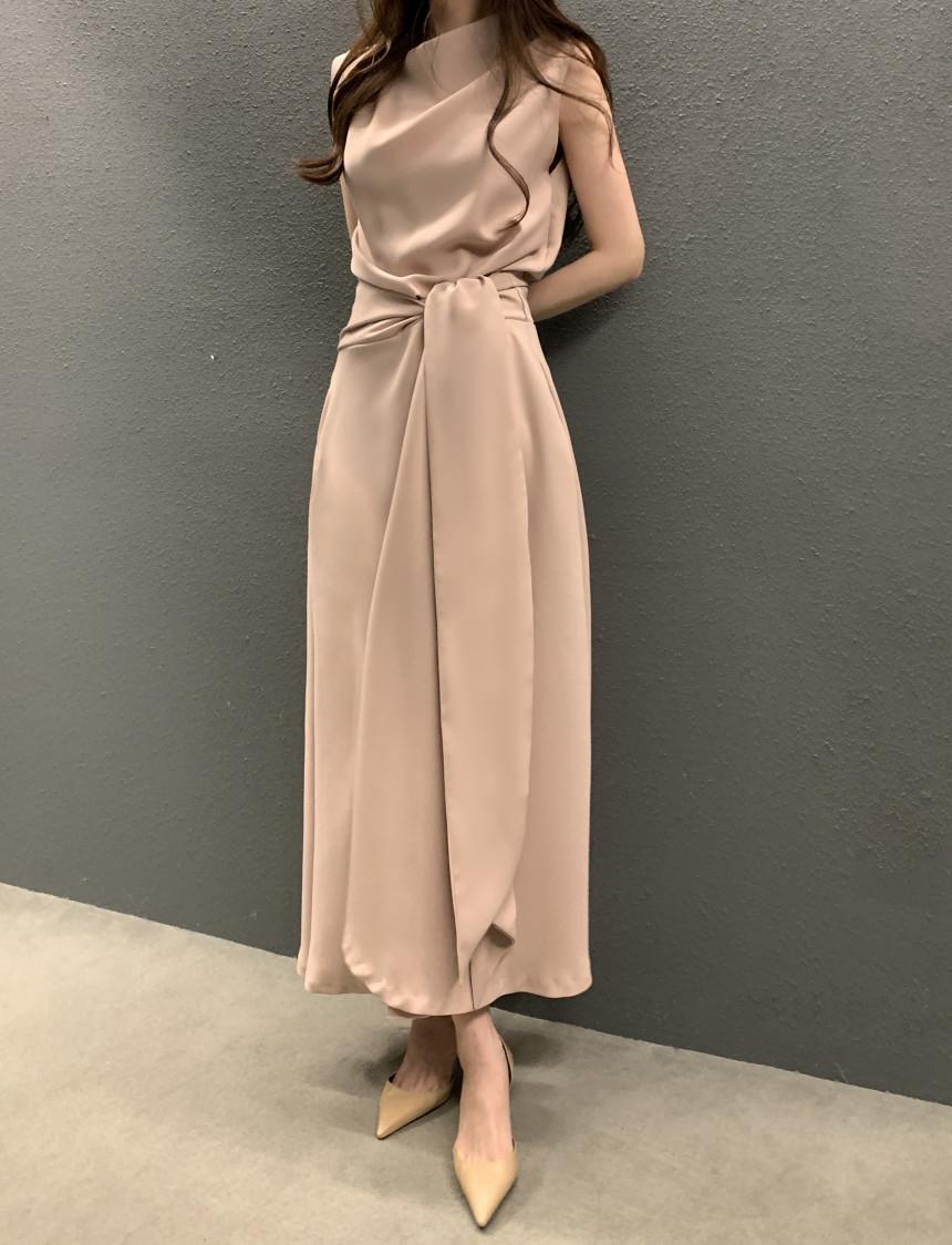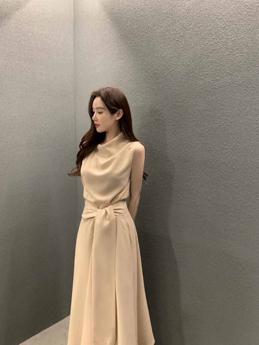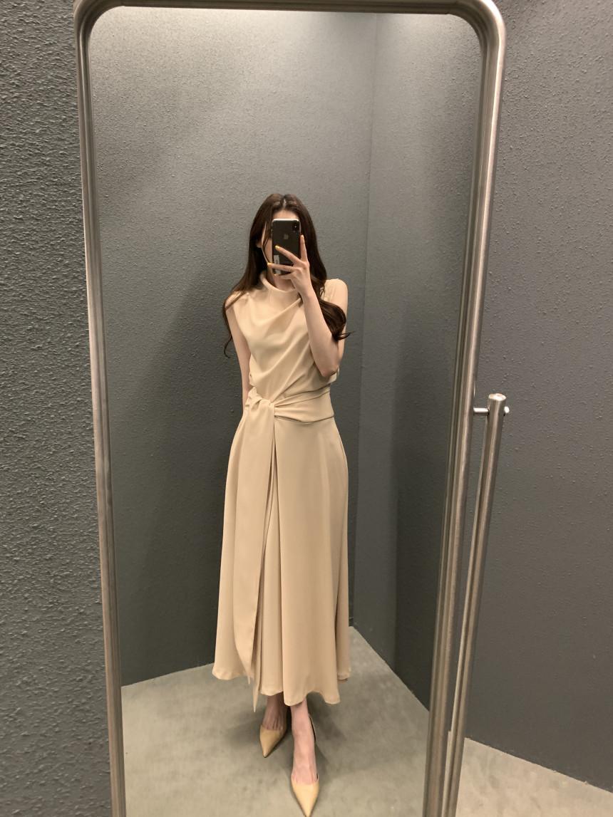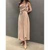 Vestido largo ajustado con cintura y cordones, diseño plisado, elegante, nuevo, japonés y coreano, de verano