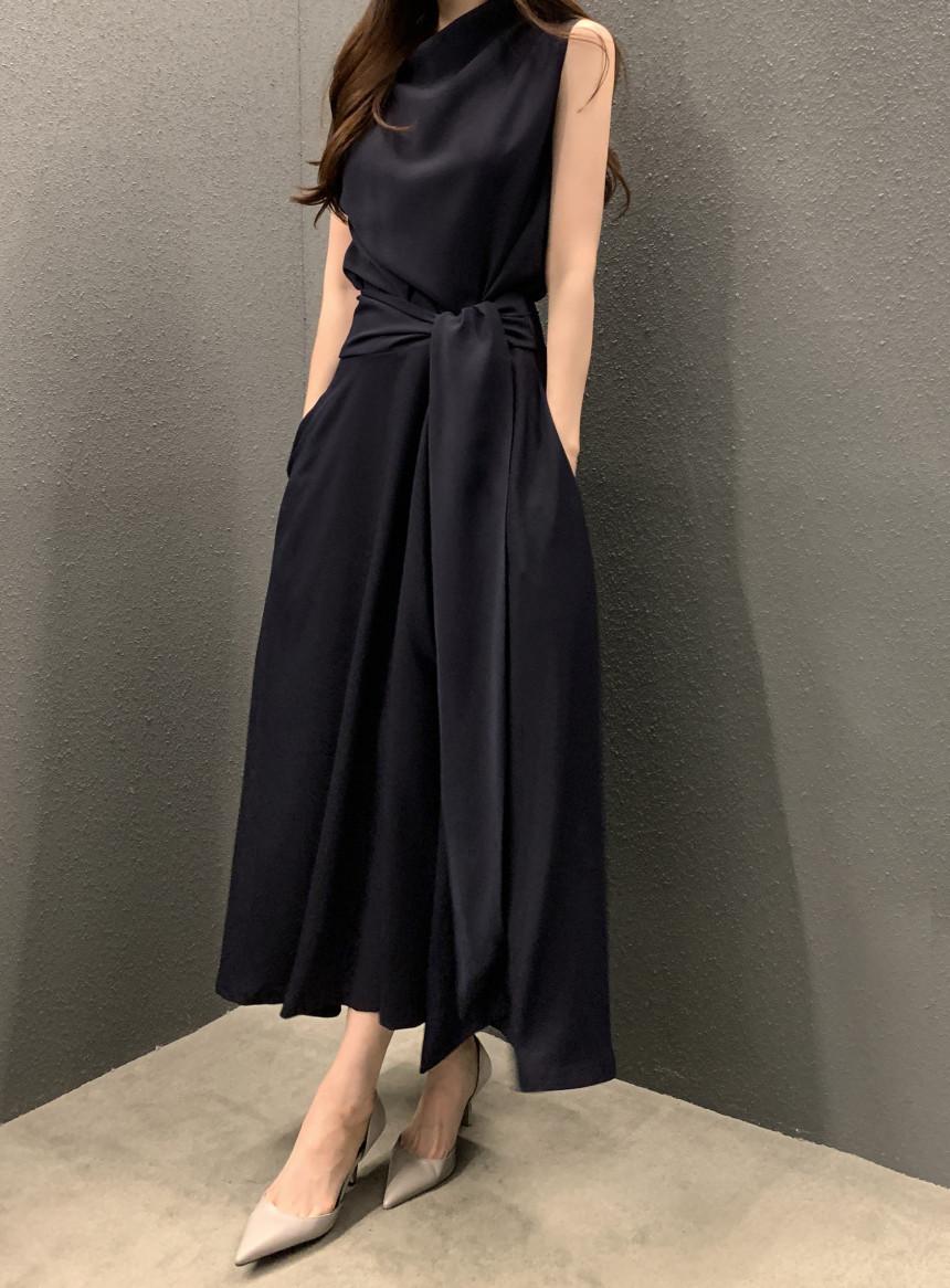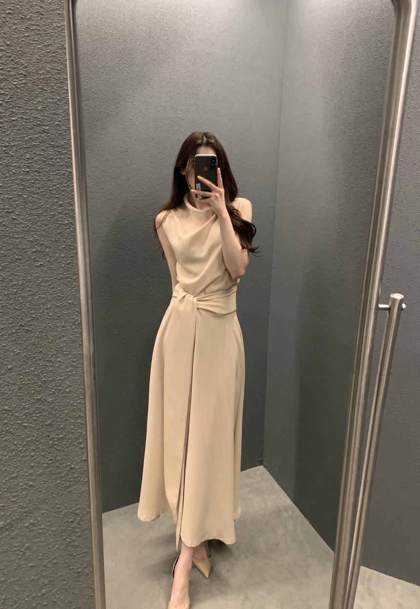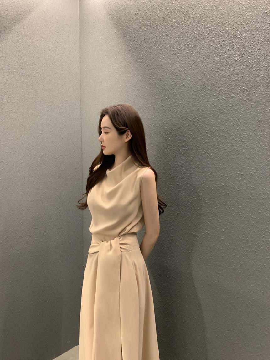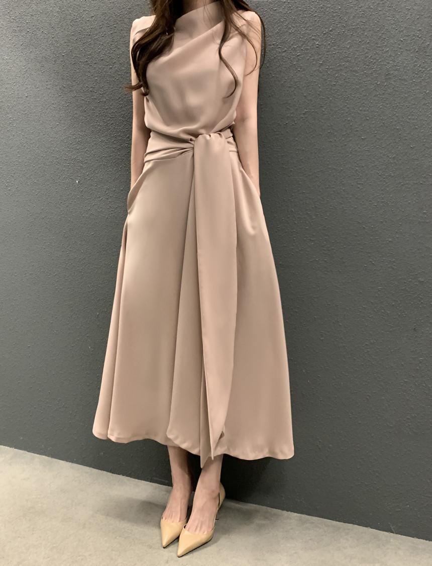 Vestido largo ajustado con cintura y cordones, diseño plisado, elegante, nuevo, japonés y coreano, de verano