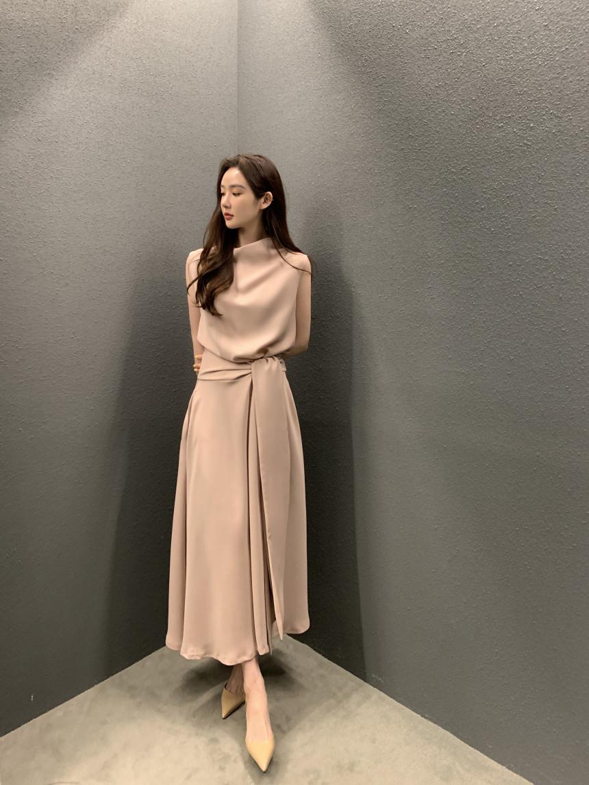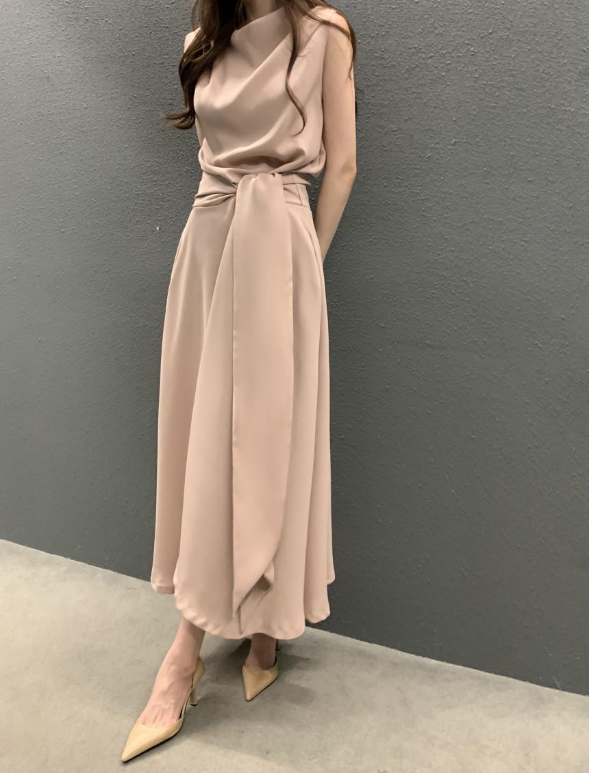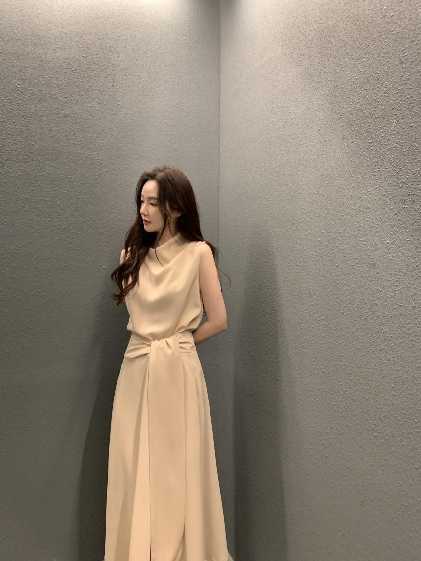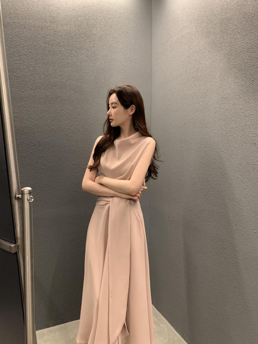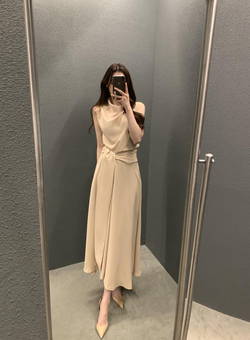 Vestido largo ajustado con cintura y cordones, diseño plisado, elegante, nuevo, japonés y coreano, de verano