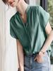 Camisa de Color Sólido con Cuello en V y Mangas Cortas para Mujer 2026 Nuevo Estilo de Verano Camisa Simple de Trabajo con Diseño Asimétrico Top