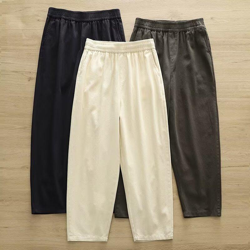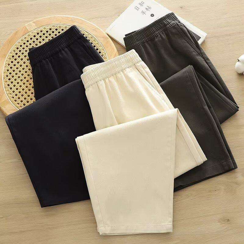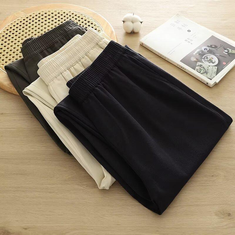 Pantalones casuales de algodón de sarga con cintura elástica para mujer, ropa de otoño 2024, venta al por mayor