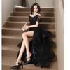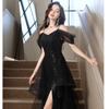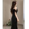 Vestido de Noche Negro con Tirantes para Mujer 2025 Nuevo Vestido Elegante de Celebridad Lujo Accesible Nicho Elegante Sexy Abertura