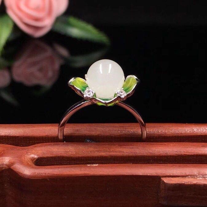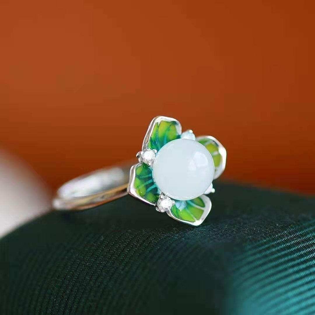 Anillo Vintage de Apertura de Flor Floración Rico Incrustación de Piedra Redonda Lujo Ligero Simple Anillo de Personalidad Ajustable para Mujer Combinable con Todo