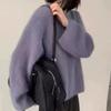 Chaqueta tipo suéter de punto para mujer, estilo retro, cómoda, combinable con todo, cuello alto, abertura, giro y estilo holgado.