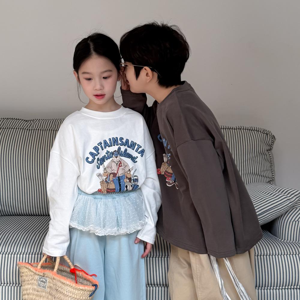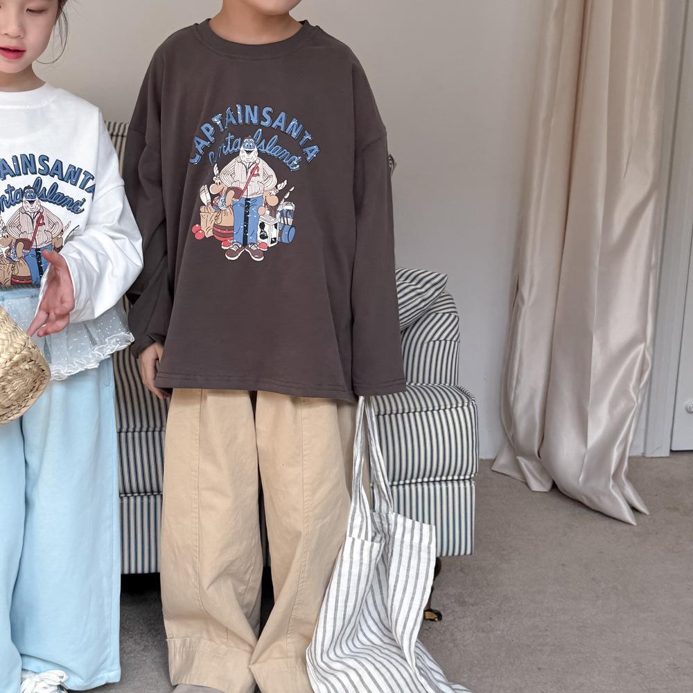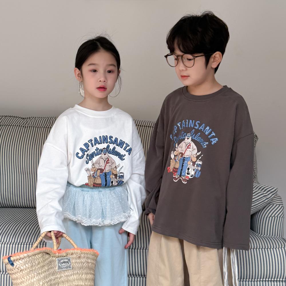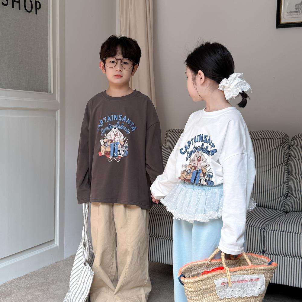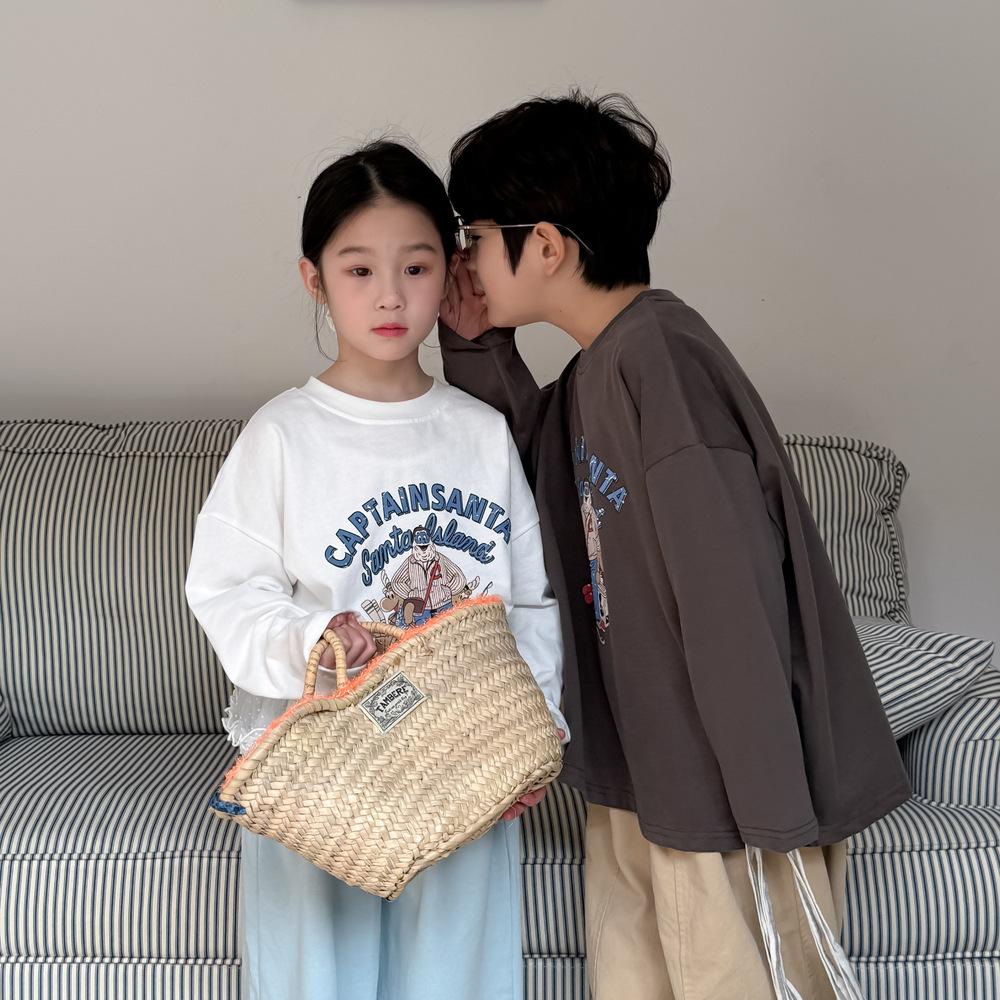 Camiseta Base Infantil Primavera 2025 Letra Coreana Dibujo Animado Estampado Camiseta Base para Niños y Niñas Top Suelto de Cuello Redondo para Niños