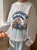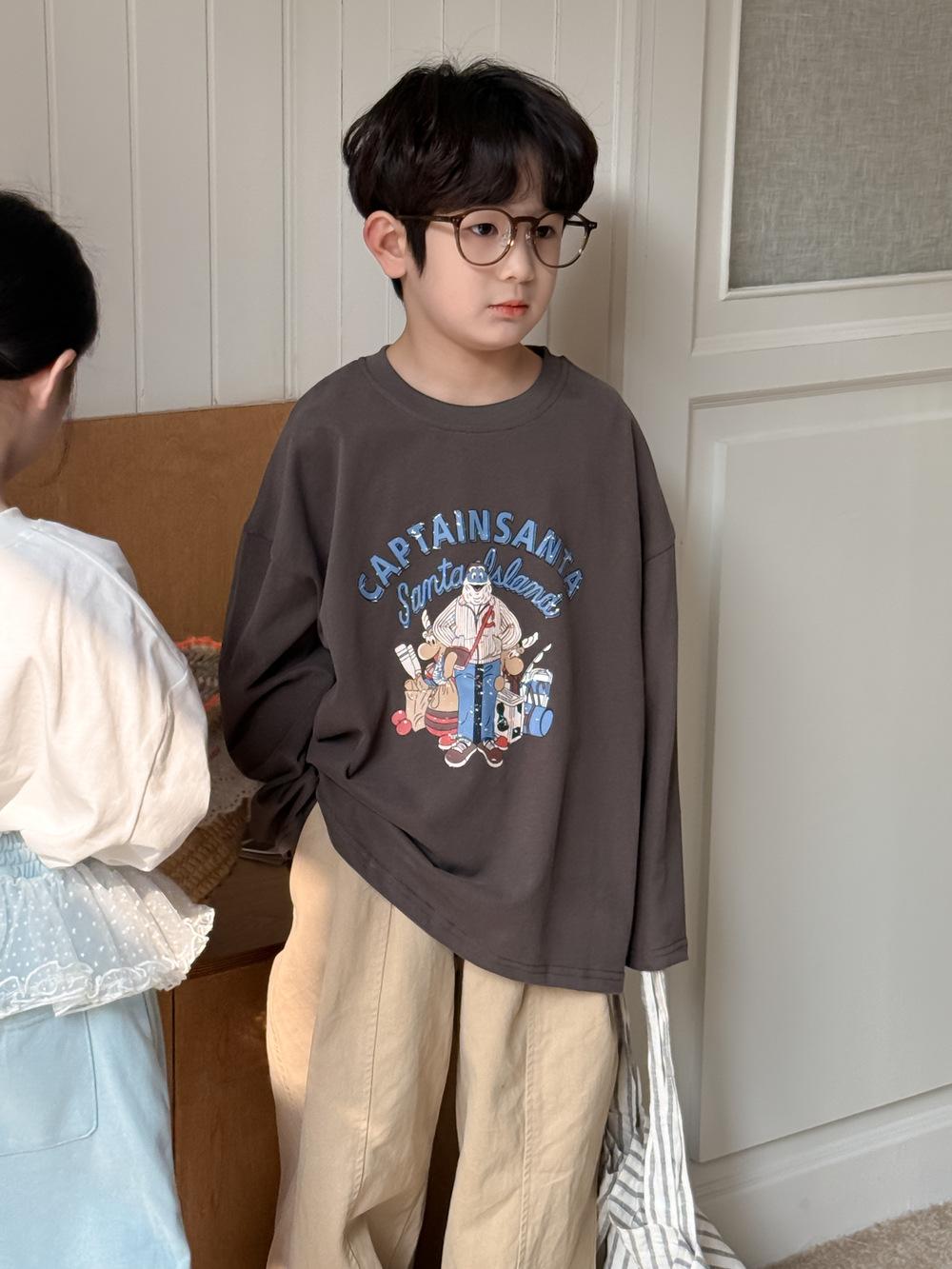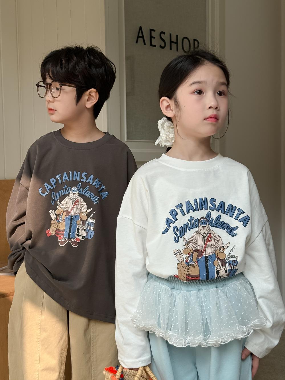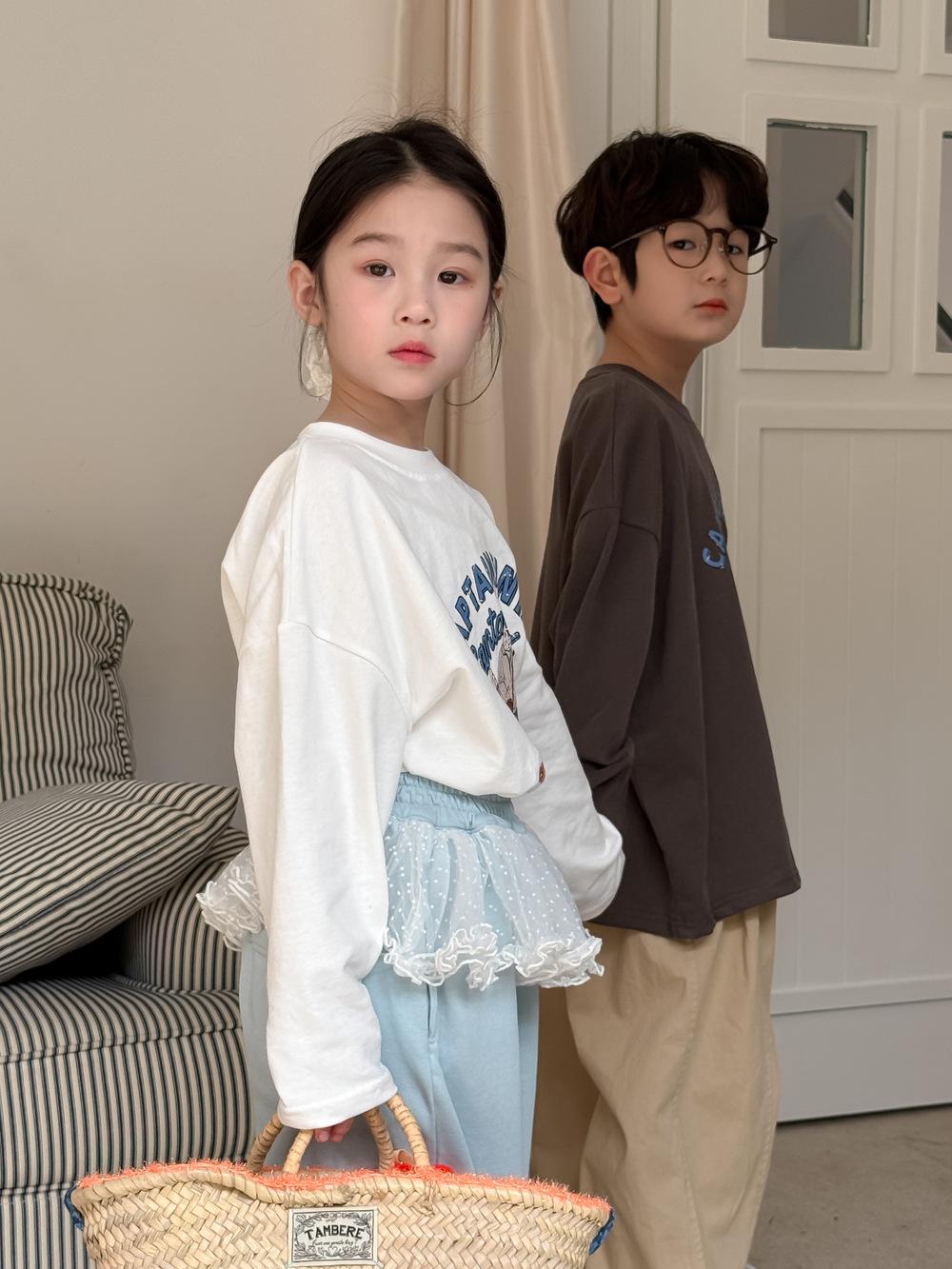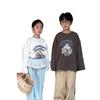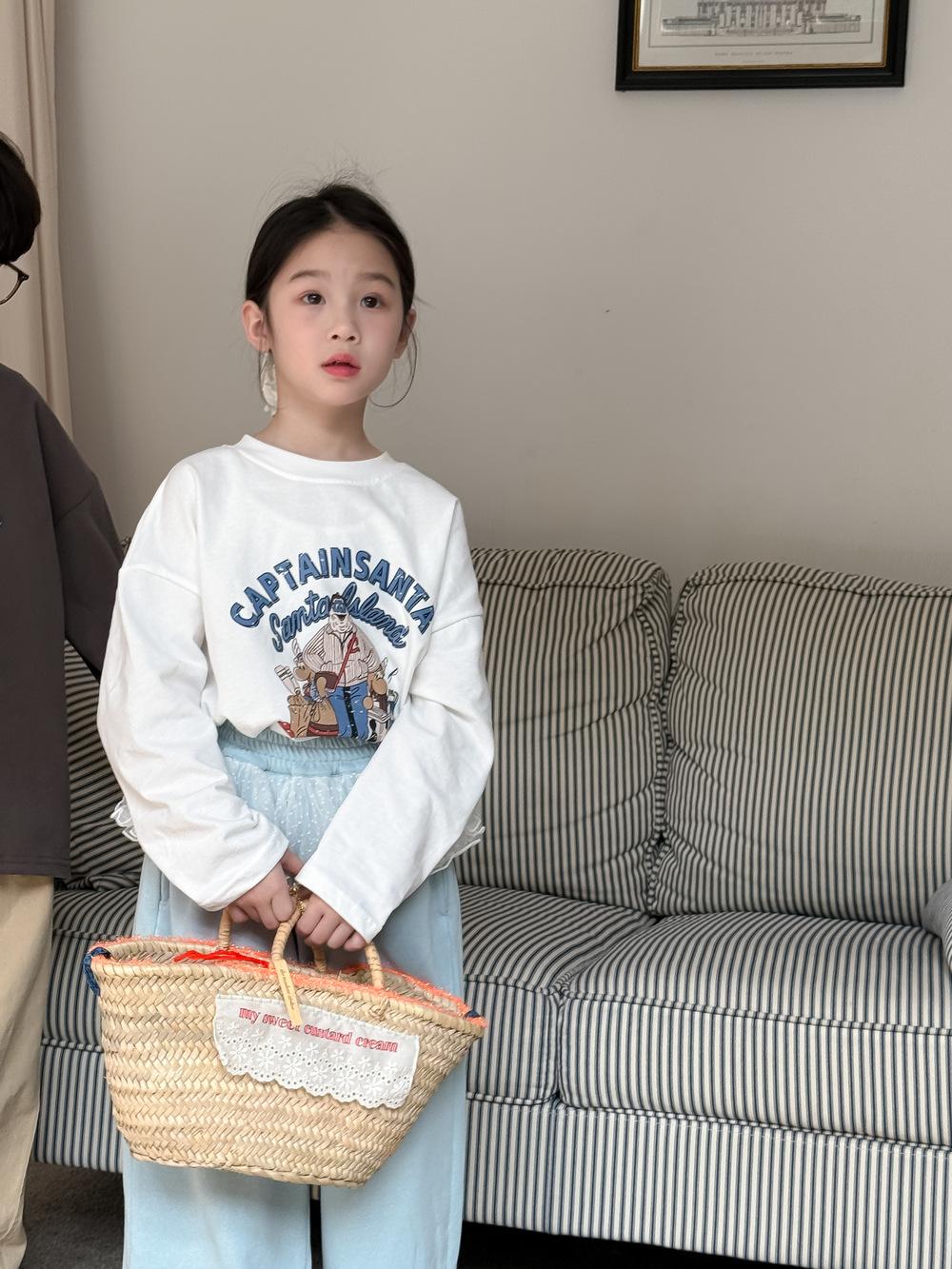 Camiseta Base Infantil Primavera 2025 Letra Coreana Dibujo Animado Estampado Camiseta Base para Niños y Niñas Top Suelto de Cuello Redondo para Niños