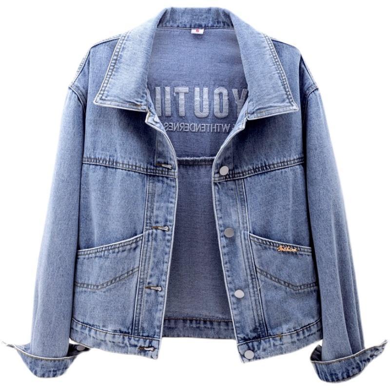 Chaqueta Corta de Mezclilla Nueva de Primavera y Otoño 2022 para Mujer Estilo Coreano Holgada Adelgazante Versátil Chaqueta Bordada Top de Color Sólido