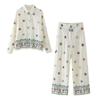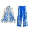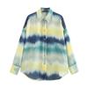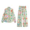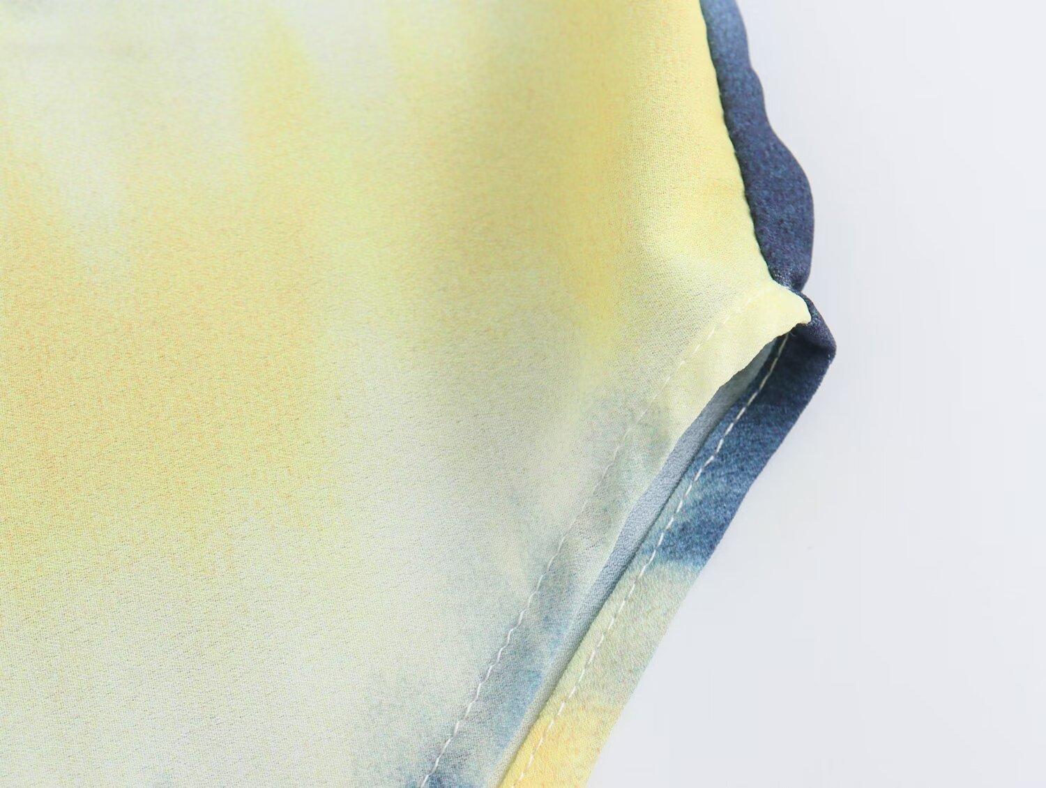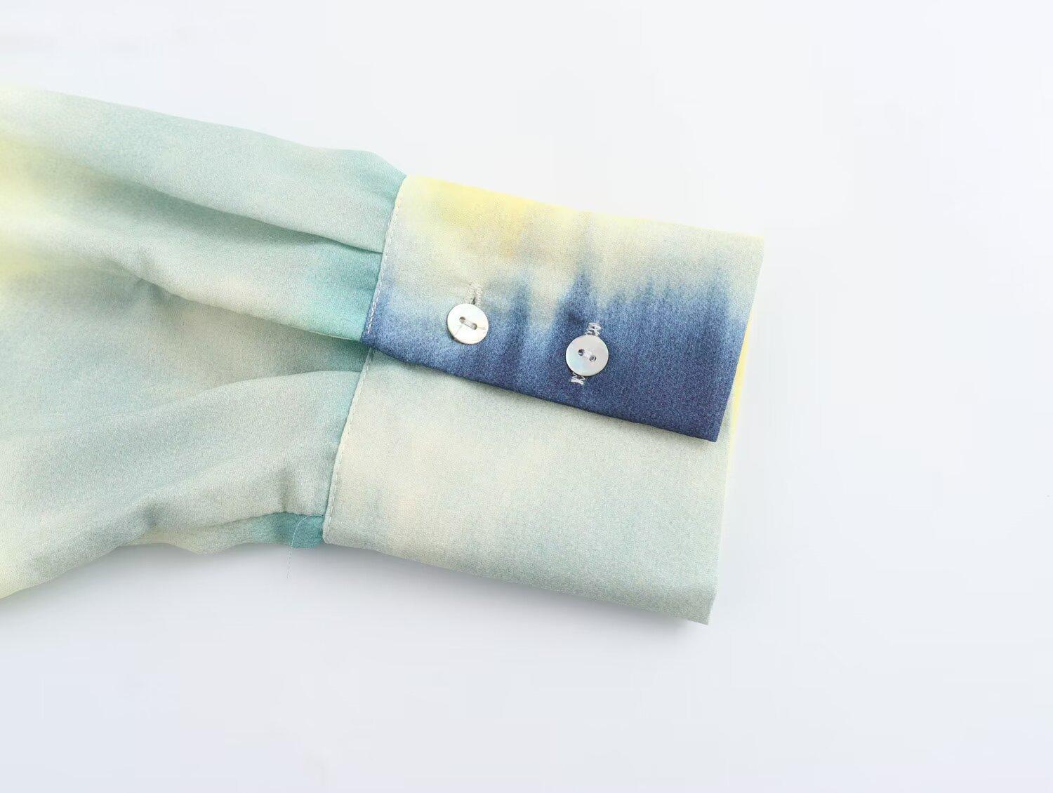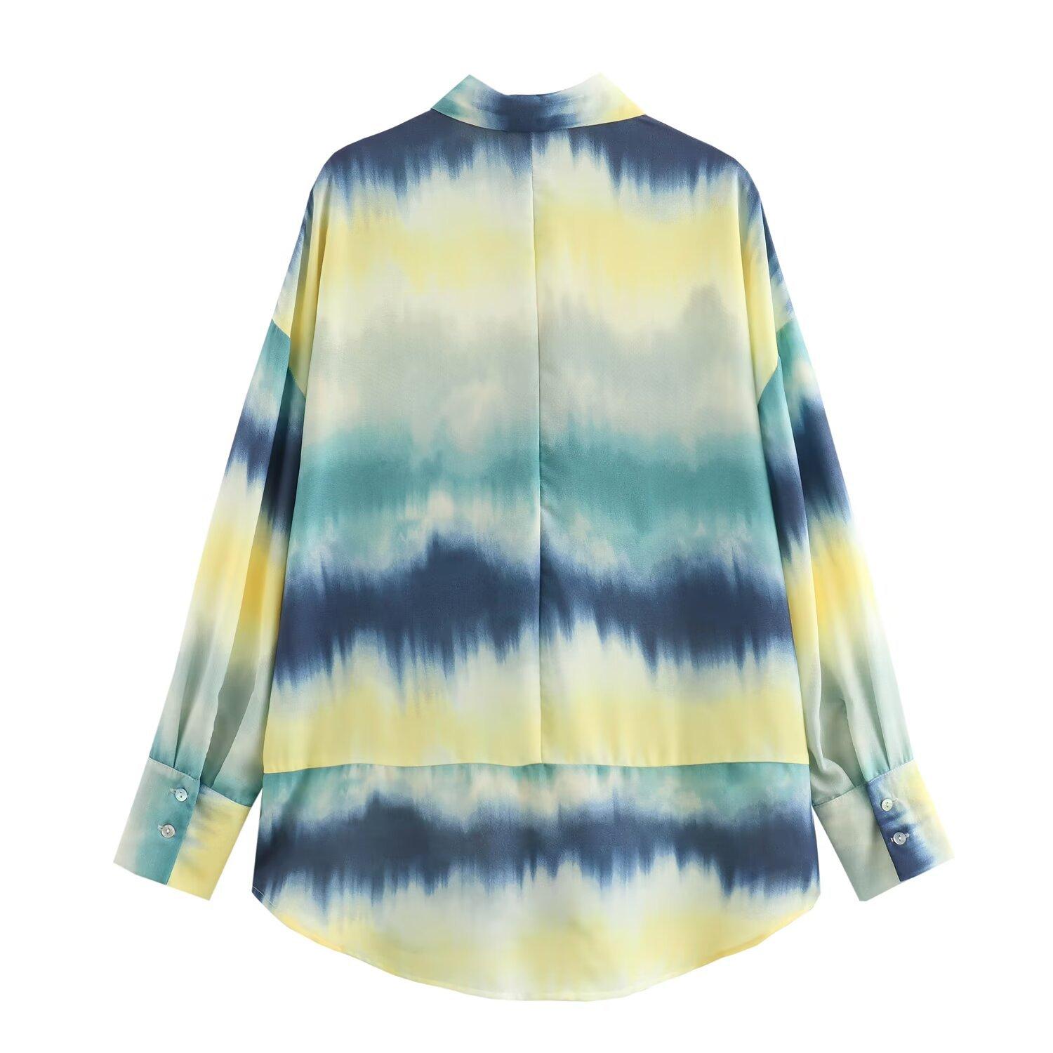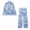 2024 Verano Nuevos Productos Europeo y Americano Transfronterizo para Mujer Camisa Drapeada Estampada Tie-Dye de Satén + Pantalones Drapeados
