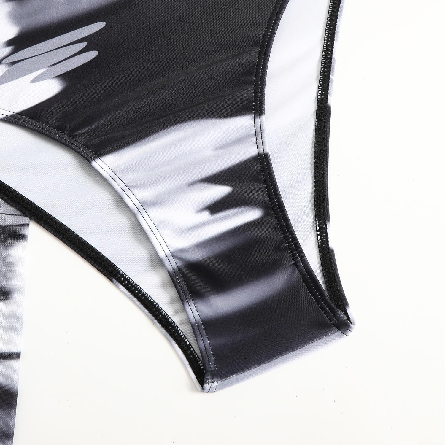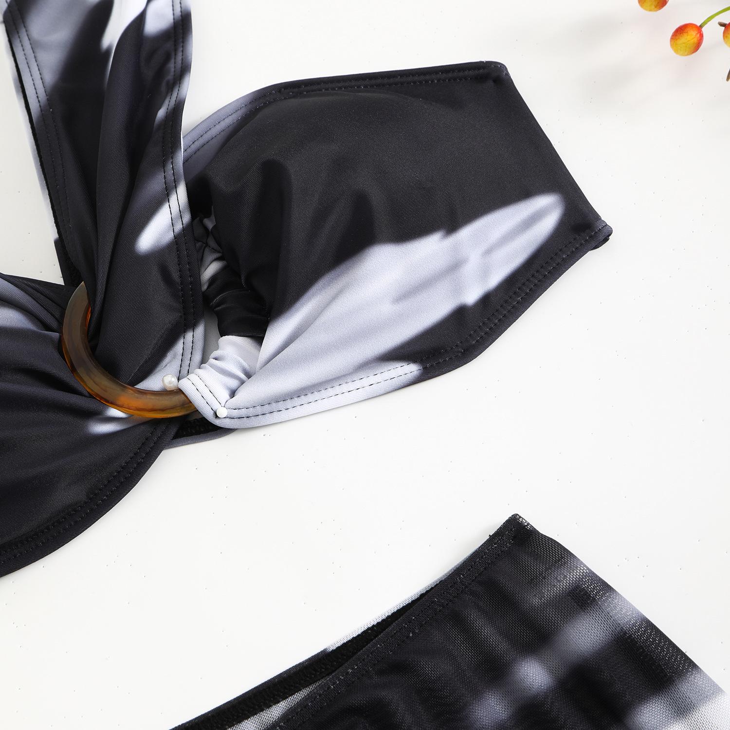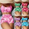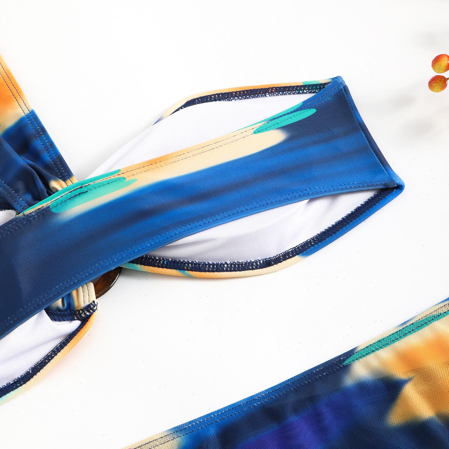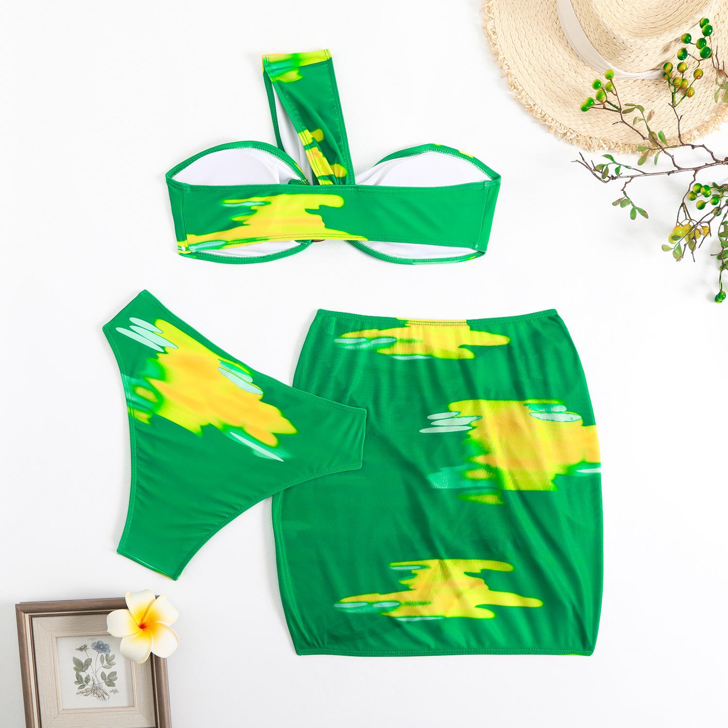 Traje de baño de tres piezas sexy con falda de un solo hombro y espalda descubierta con estampado teñido anudado para mujer, comercio exterior europeo y americano, 2025