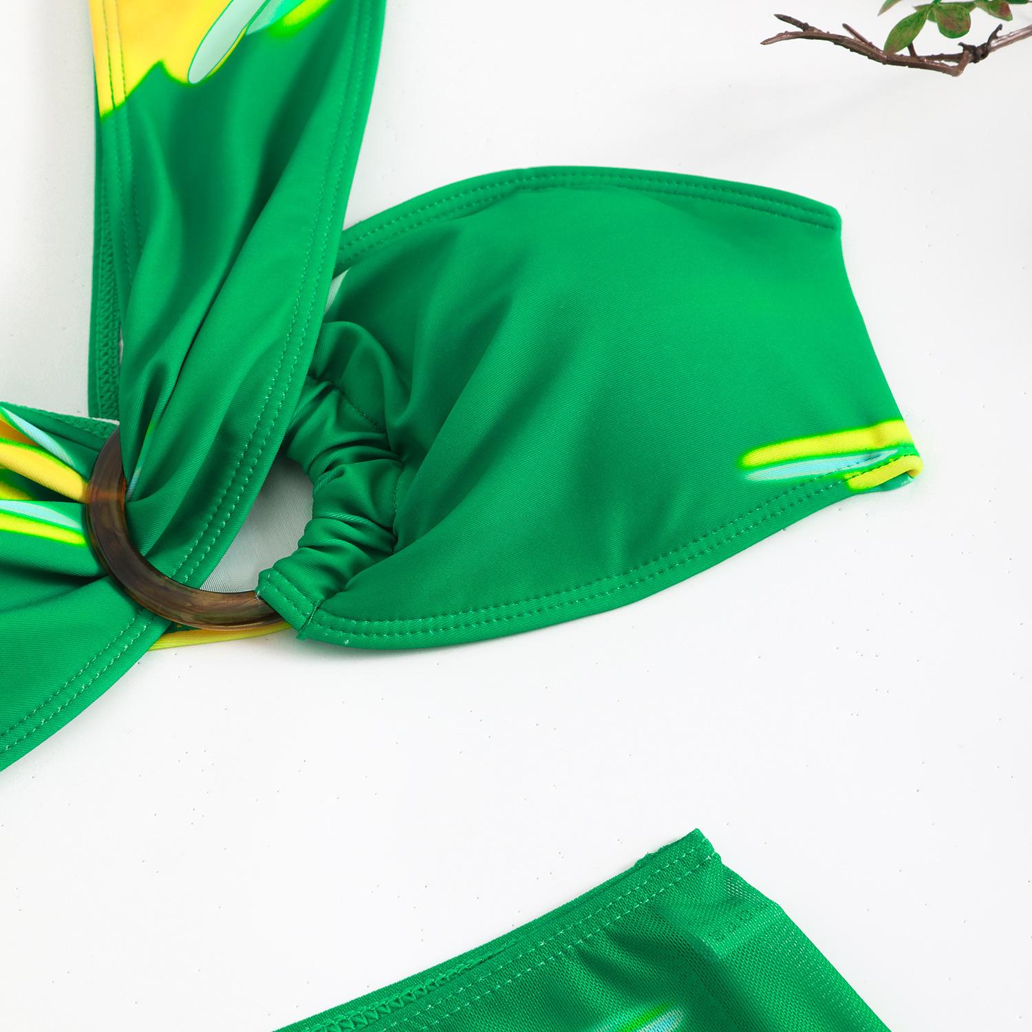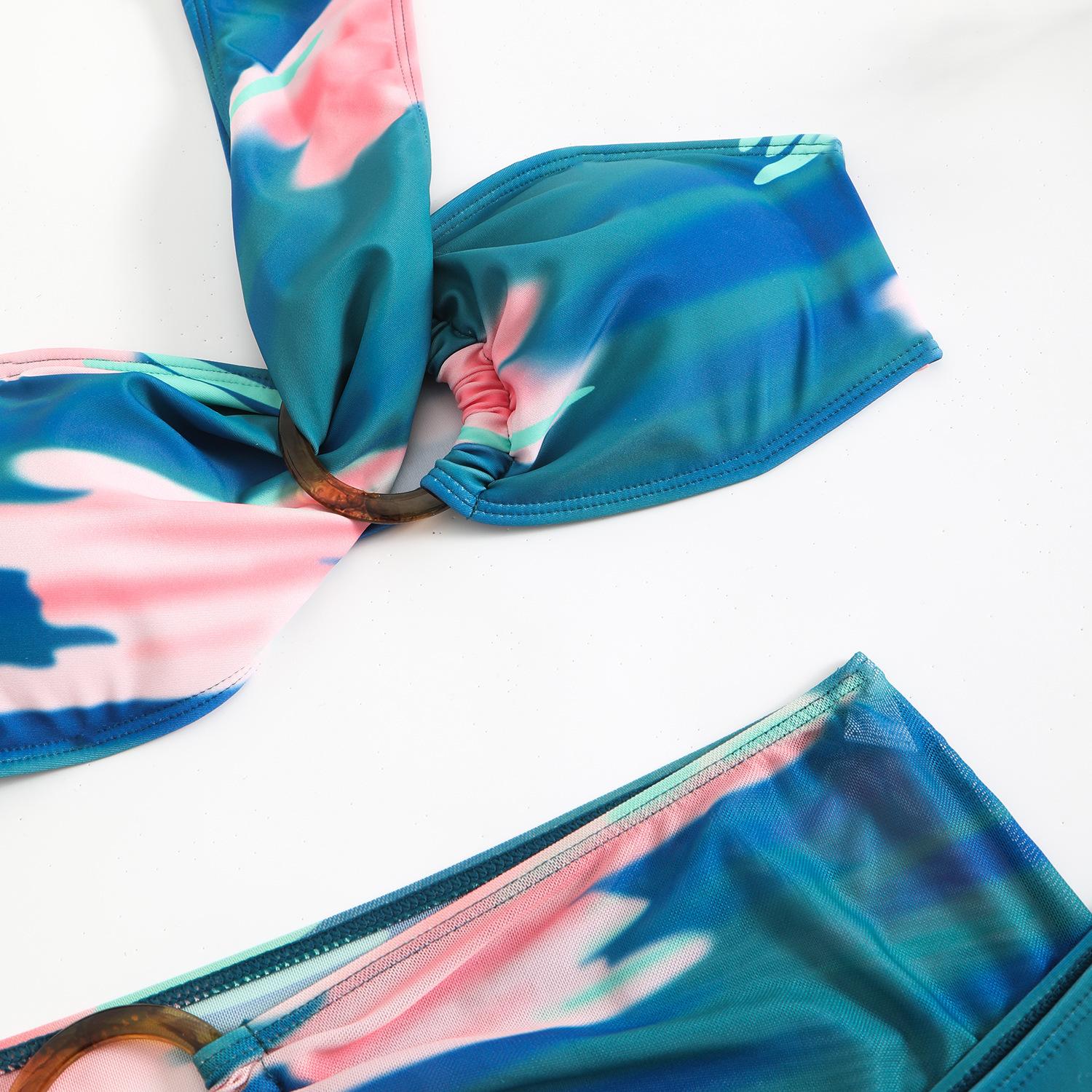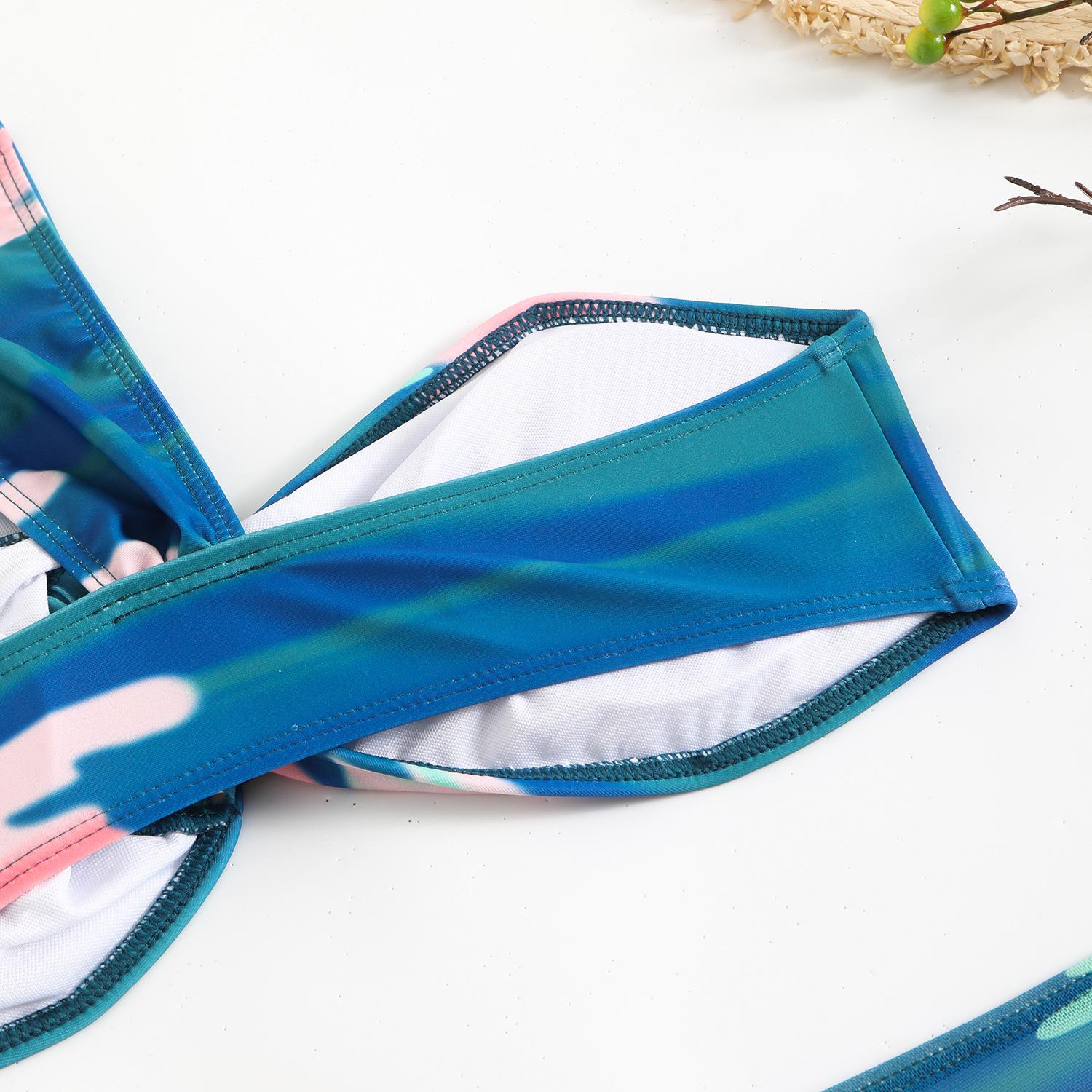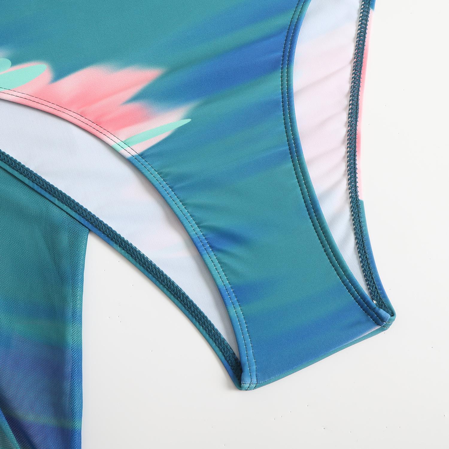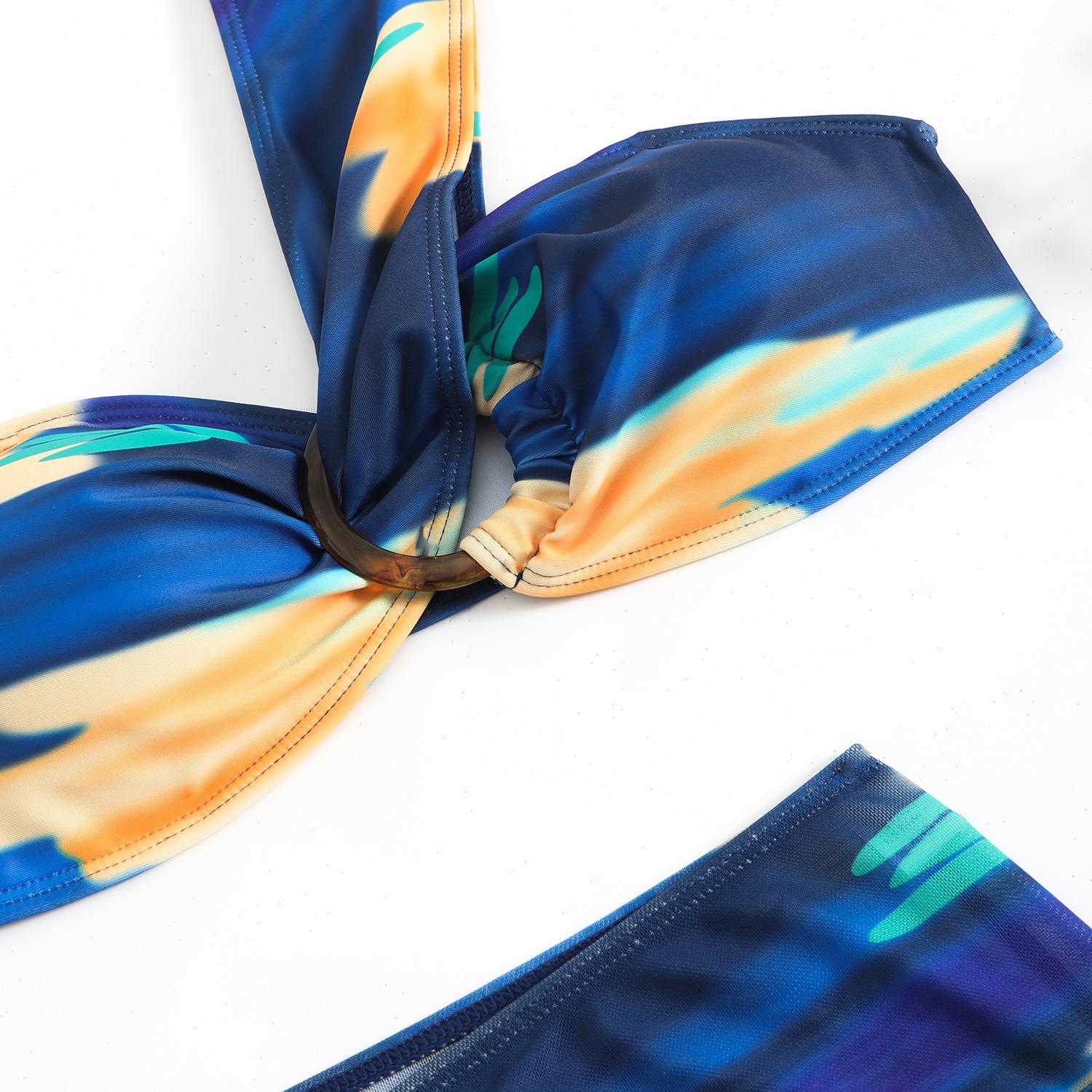 Traje de baño de tres piezas sexy con falda de un solo hombro y espalda descubierta con estampado teñido anudado para mujer, comercio exterior europeo y americano, 2025