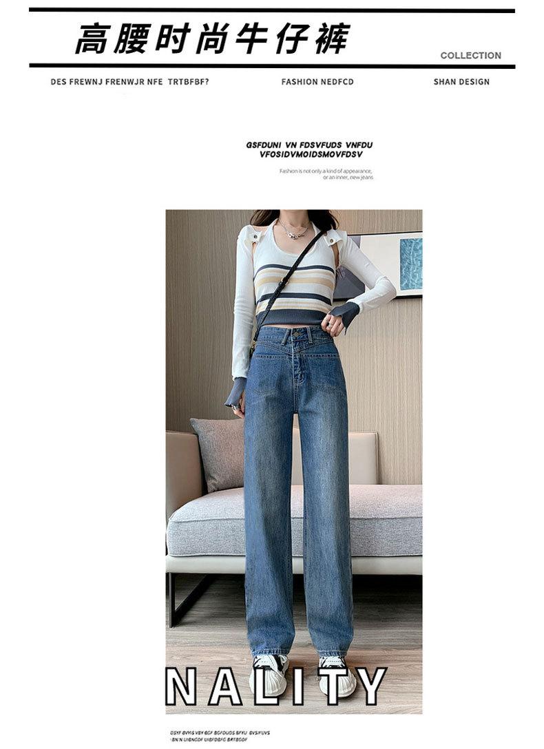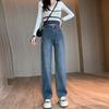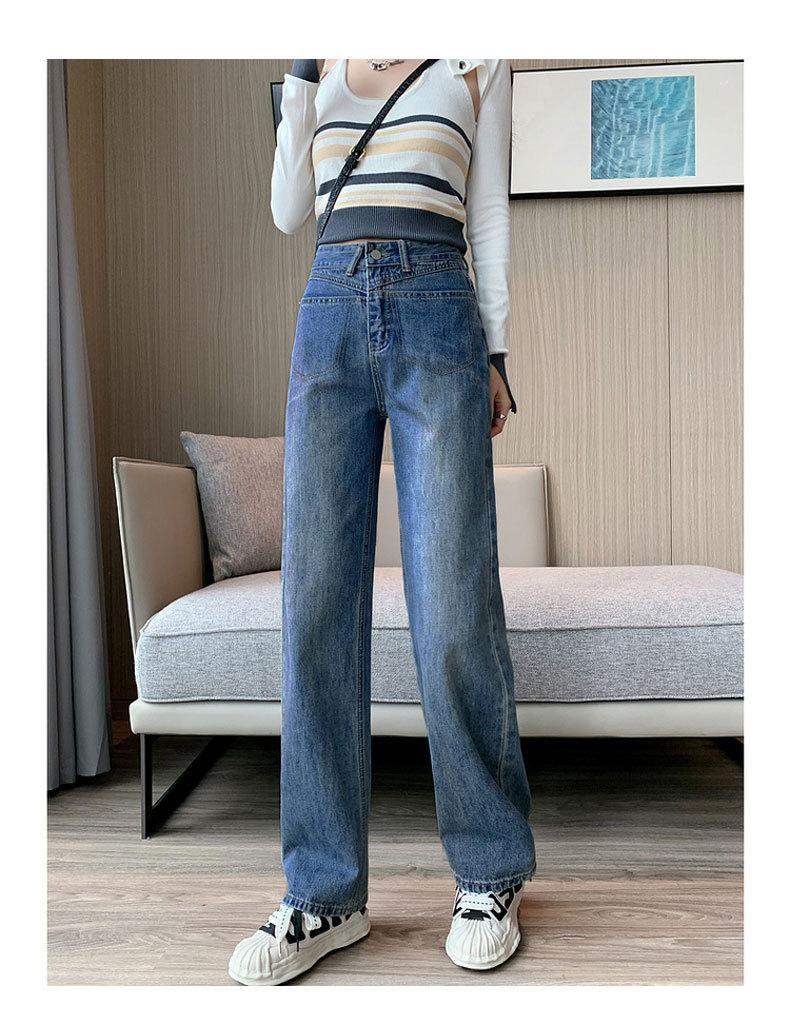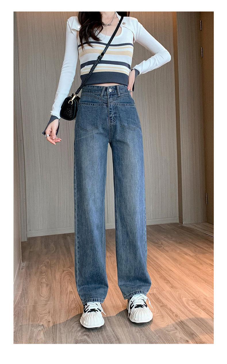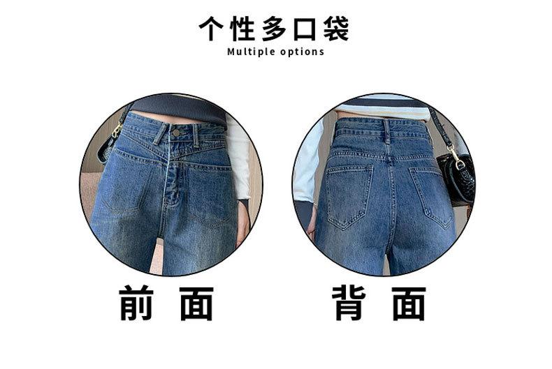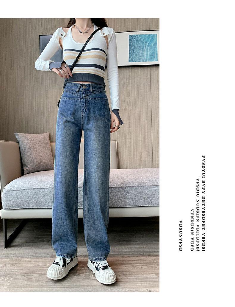 Jeans Vintage de Moda para Mujer Cintura Alta Diseño de Bolsillos Delanteros Holgados Forma de Pera Pierna Ancha Rectos de Mezclilla para Mujer