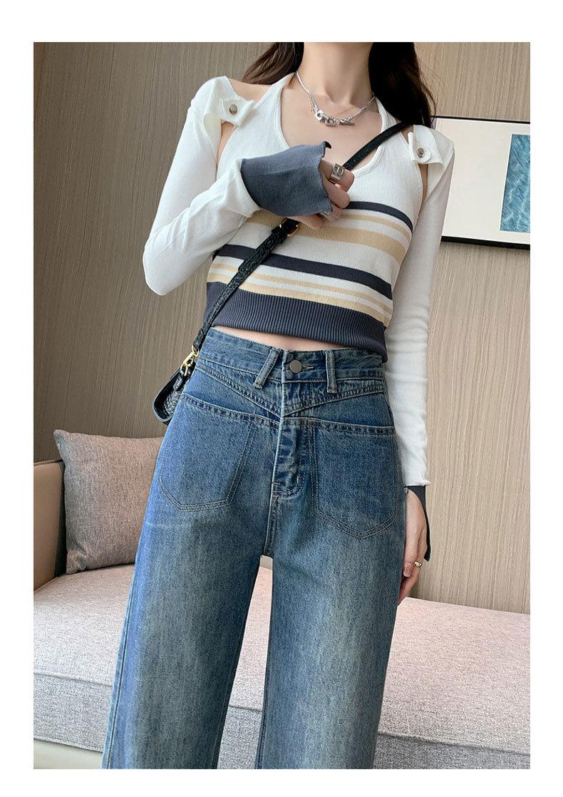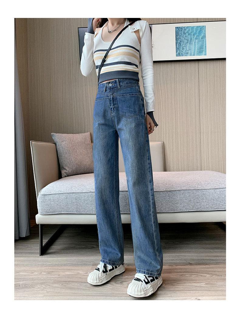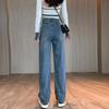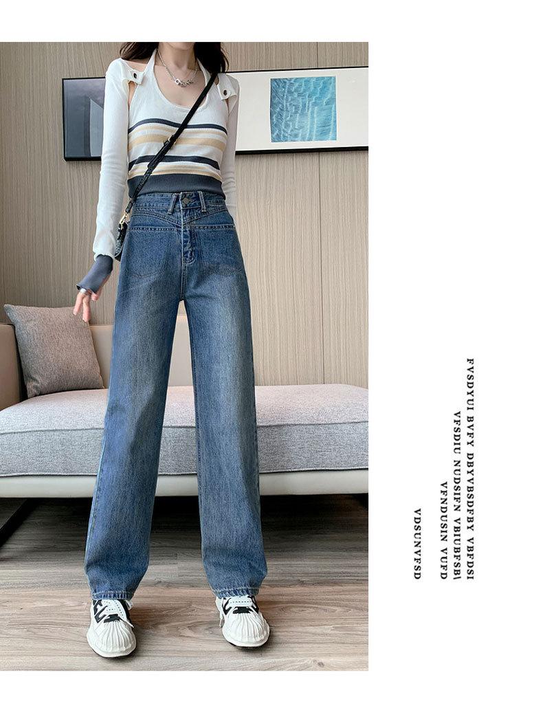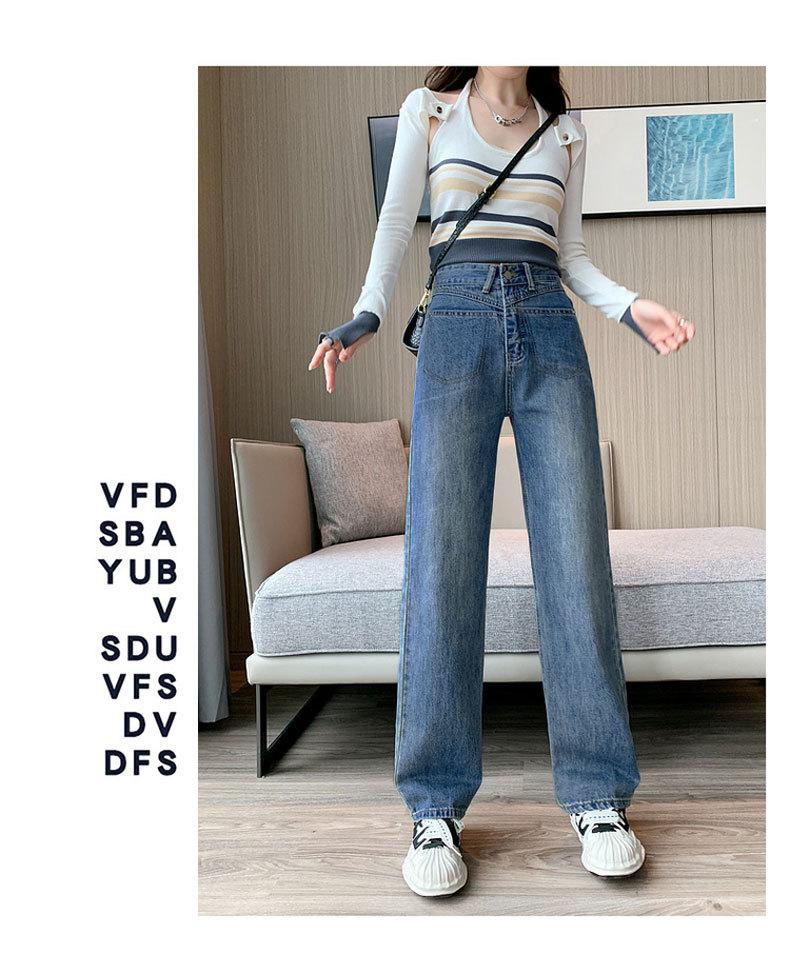 Jeans Vintage de Moda para Mujer Cintura Alta Diseño de Bolsillos Delanteros Holgados Forma de Pera Pierna Ancha Rectos de Mezclilla para Mujer