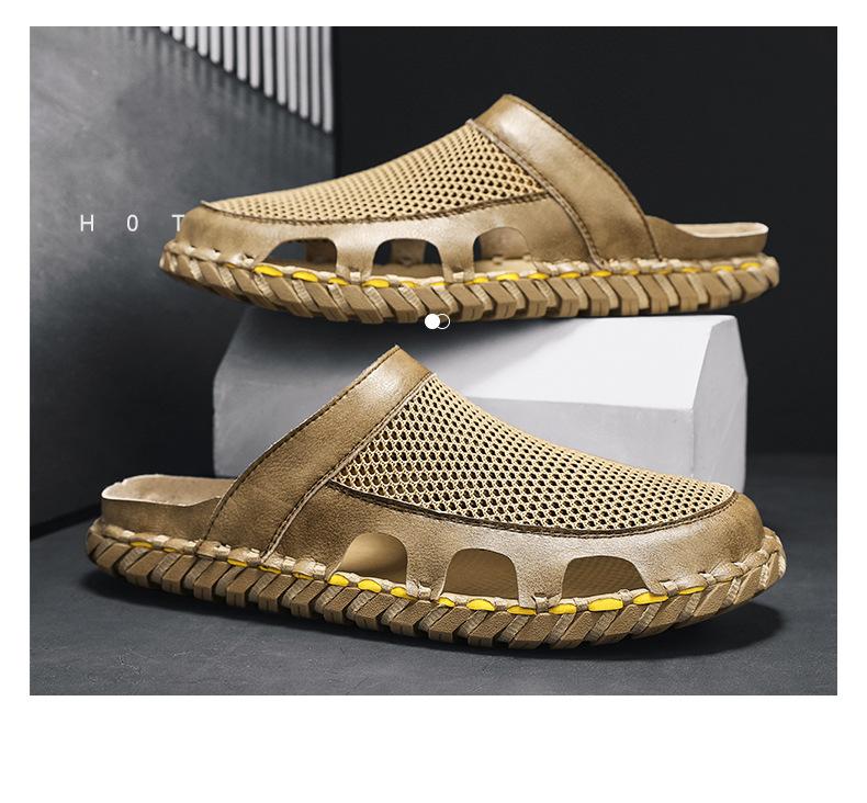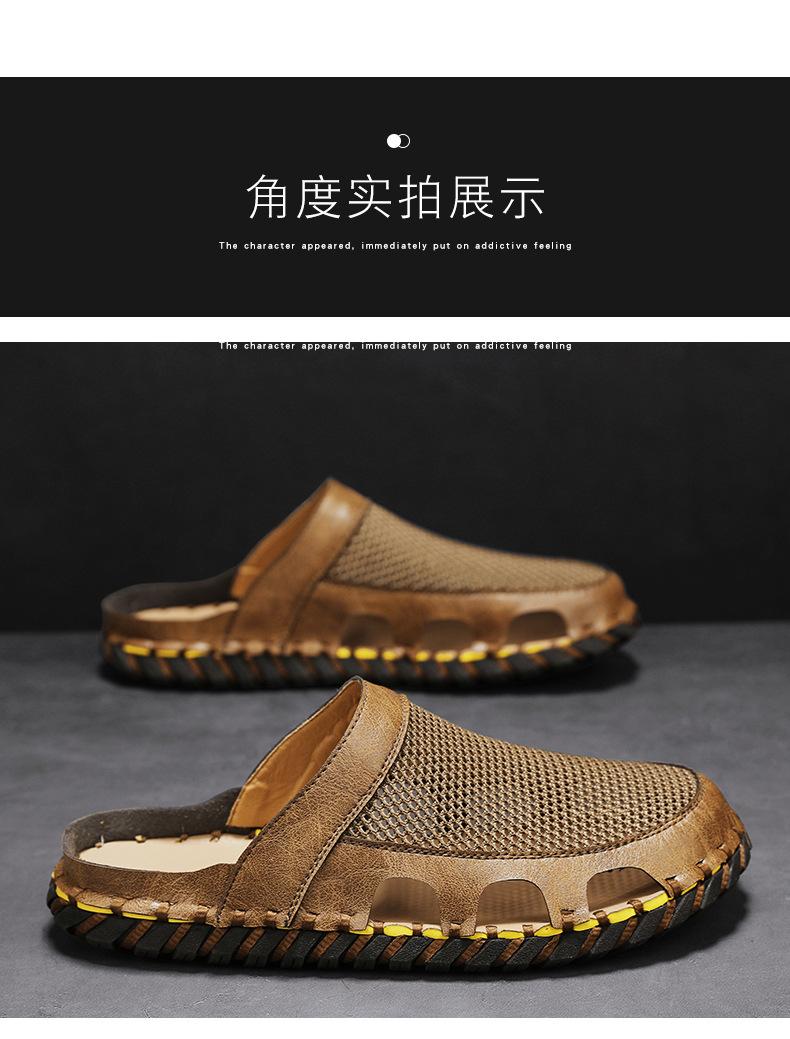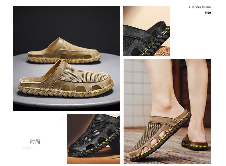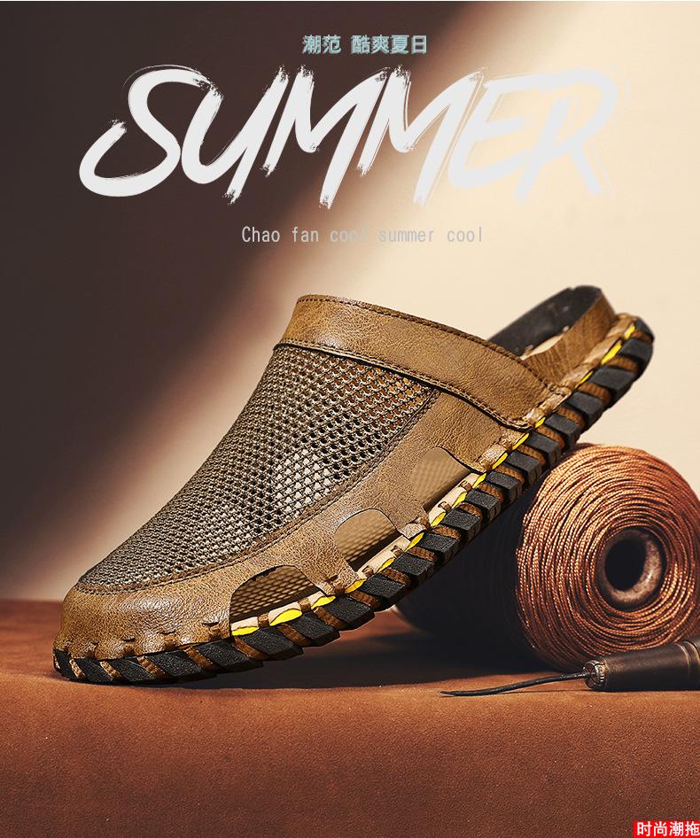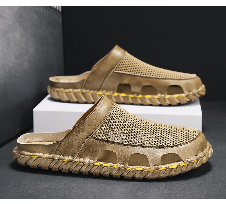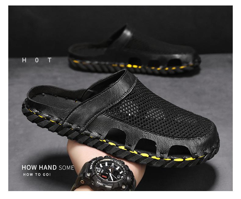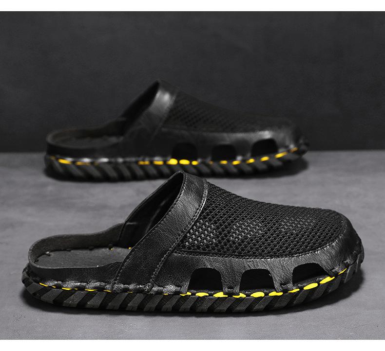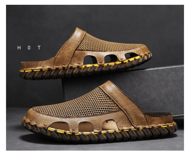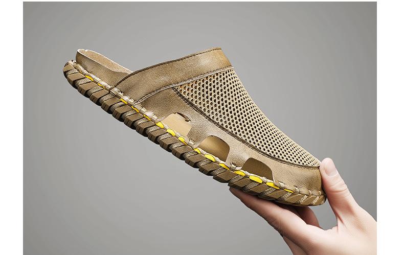 Sandalias informales de verano para hombre, talla grande 46, transpirables, de doble uso, cosidas a mano.