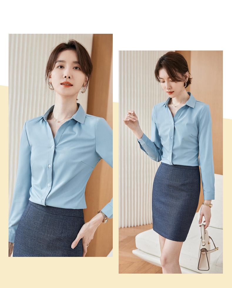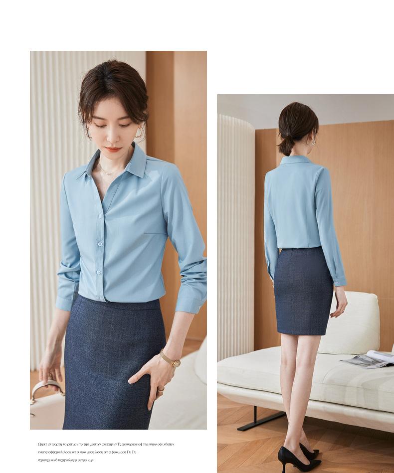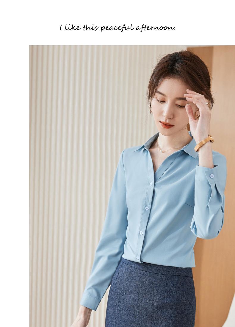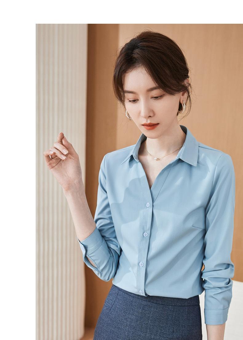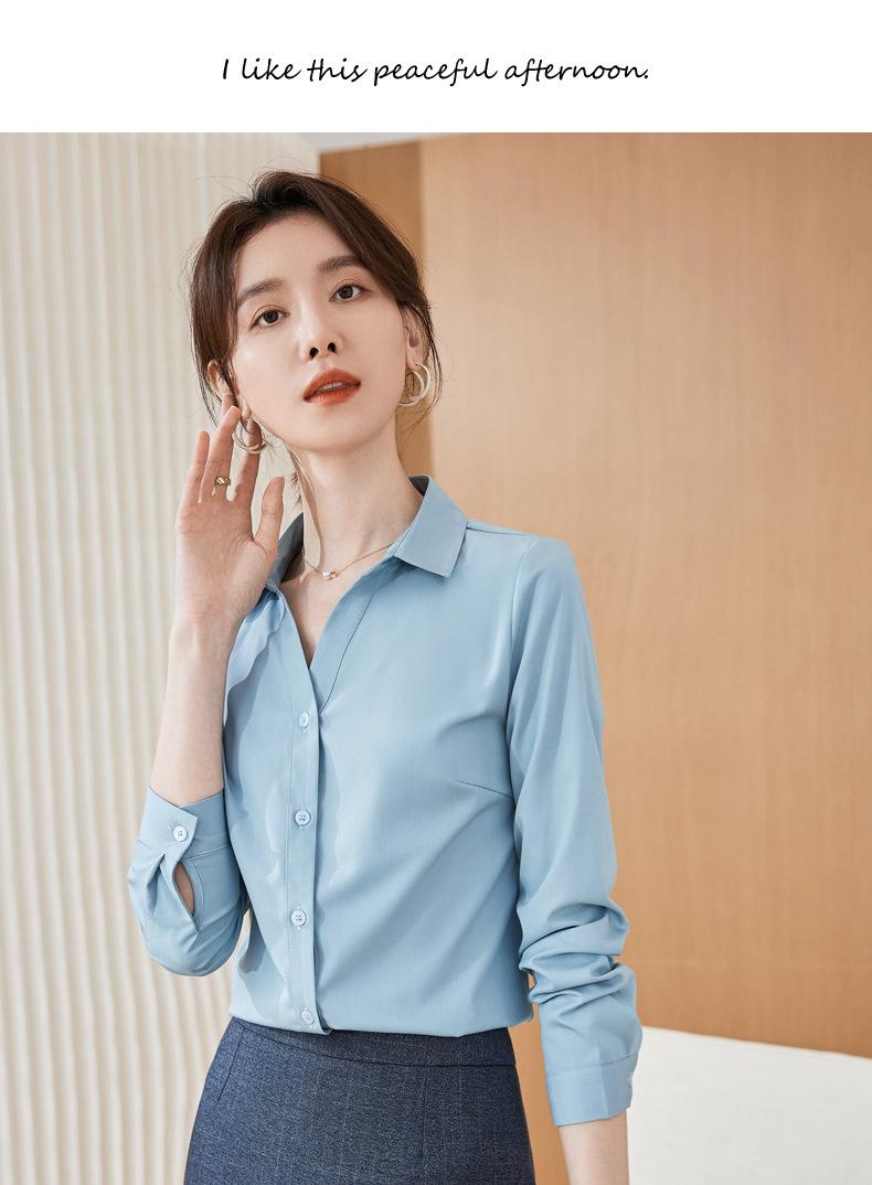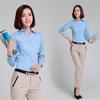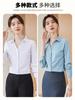 Camisa profesional para mujer, blanca, de manga larga, de otoño, ajustada, para entrevistas de trabajo, ropa de trabajo, camisa básica, camisa azul elegante