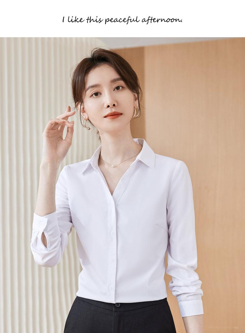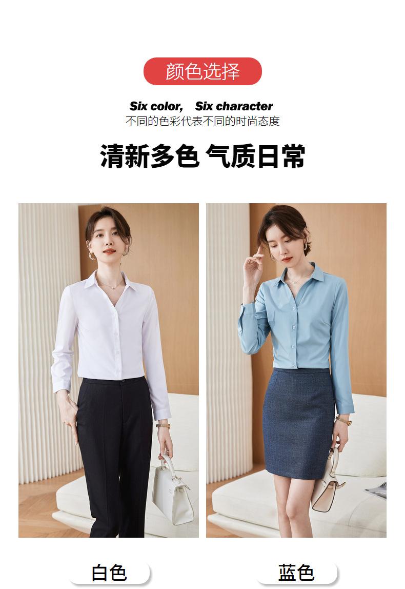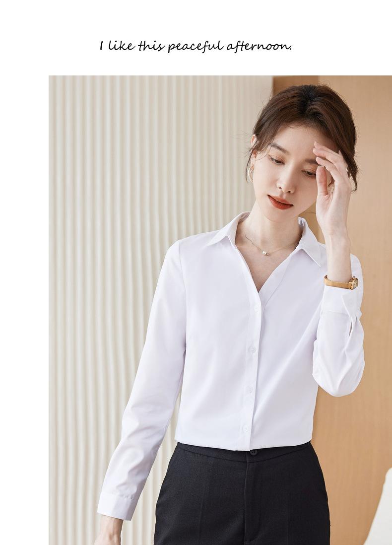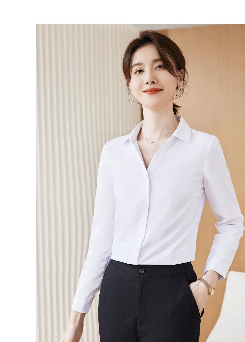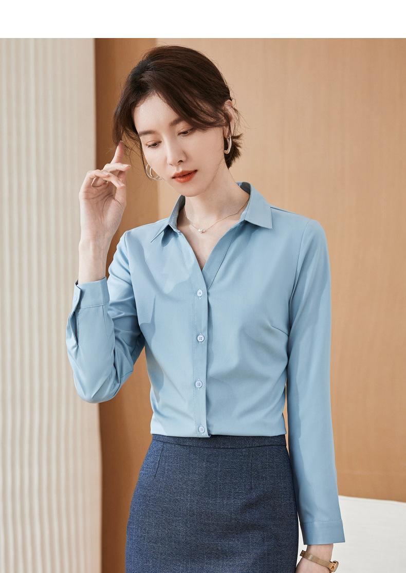 Camisa profesional para mujer, blanca, de manga larga, de otoño, ajustada, para entrevistas de trabajo, ropa de trabajo, camisa básica, camisa azul elegante