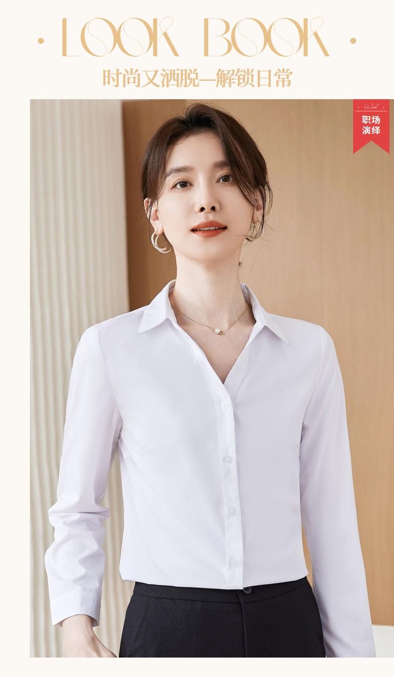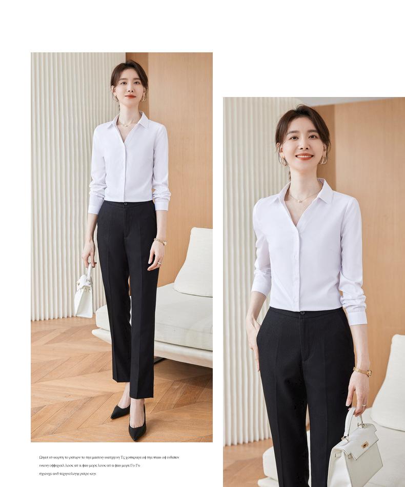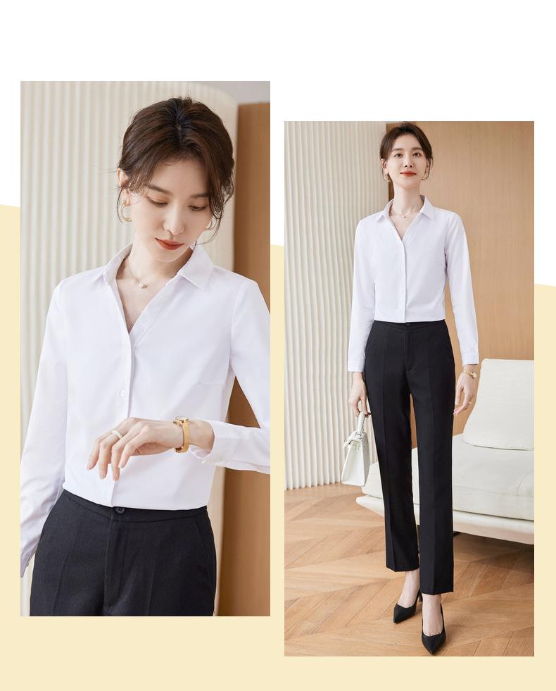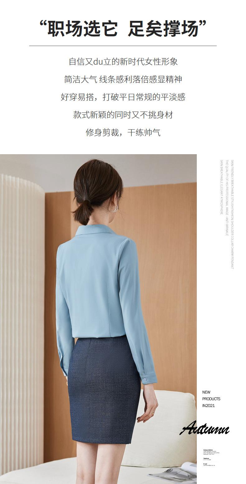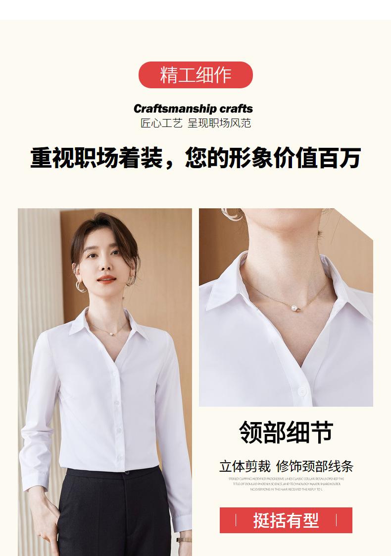 Camisa profesional para mujer, blanca, de manga larga, de otoño, ajustada, para entrevistas de trabajo, ropa de trabajo, camisa básica, camisa azul elegante