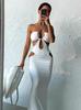 Vestido largo de playa con cordones y escote en V profundo, estilo Spice Girl, estilo europeo y americano, 2024