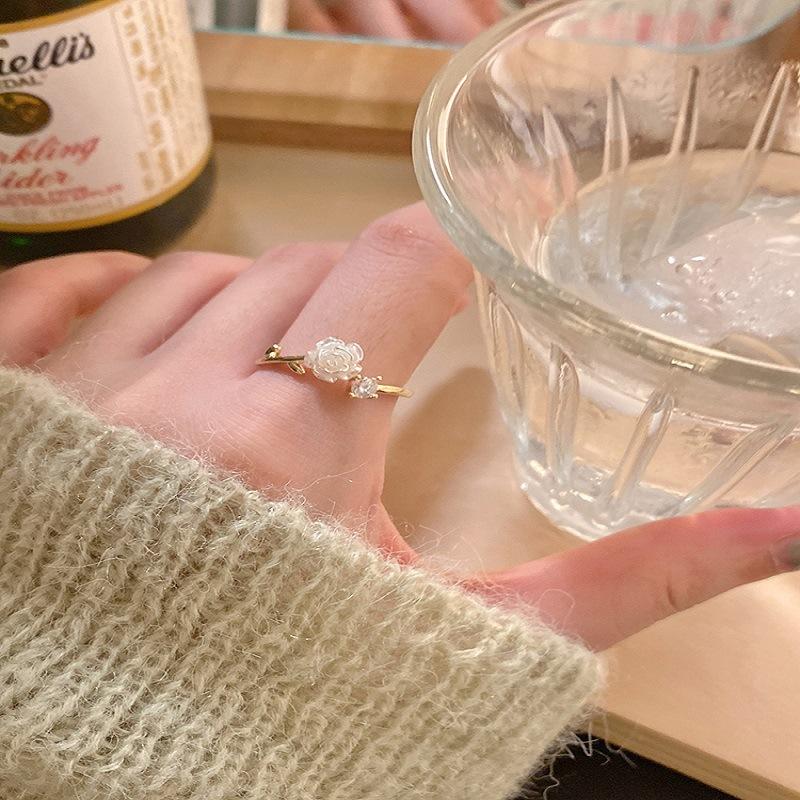 Anillo abierto Camellia para mujer, ajustable, pequeño, para dedo índice