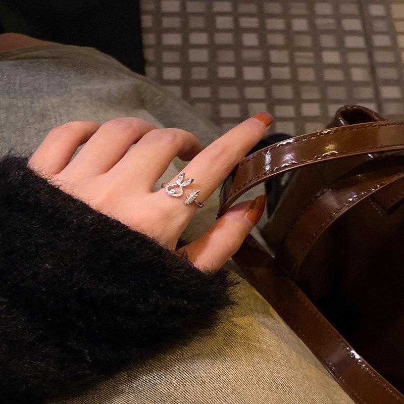Anillo abierto con forma de mariposa y hada de oxígeno de hielo para el dedo índice
