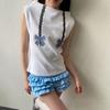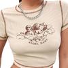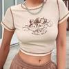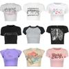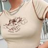 Ropa de verano para mujer, estilo europeo y americano, con estampado de ángel distintivo, nueva camiseta vintage sexy ajustada con cuello redondo y manga corta con estampado de ombligo.