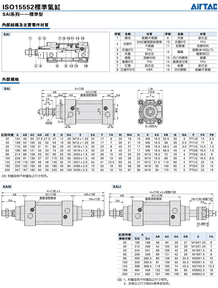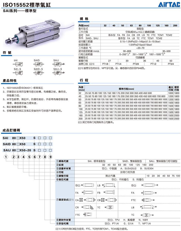 Cilindro AirTAC Original Adeke SAI SAI32 * 650/700/750/800-S