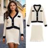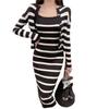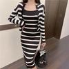 Traje de dos piezas de estilo coreano de moda para mujer, Top a rayas de diseñador, Nuevo vestido de punto ajustado de otoño transfronterizo