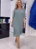 2024 Otoño Europeo y Americano Transfronterizo Amazon Nuevo Cuello Redondo Color Sólido Empalmado Plisado Elegante Vestido Talla Grande