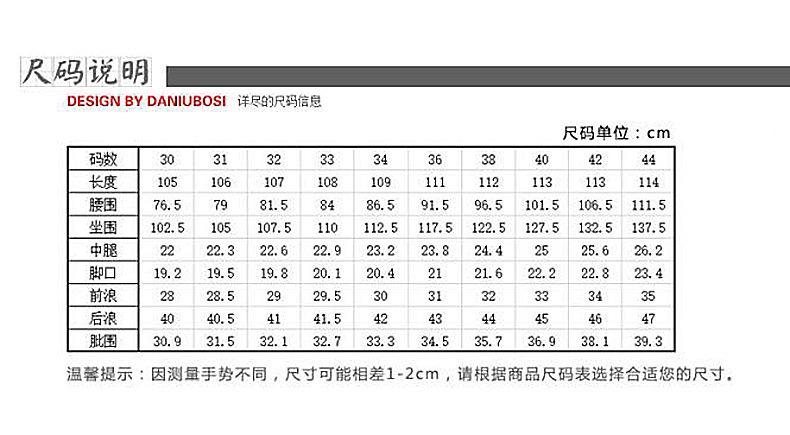 30, 31, 32, 33, 34, 36, 38, 40, 42, 44