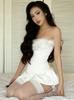 Ropa de mujer europea y americana 2025 verano nuevo sexy top de tubo sin espalda falda plisada a la cadera vestido con empalme de malla femenino
