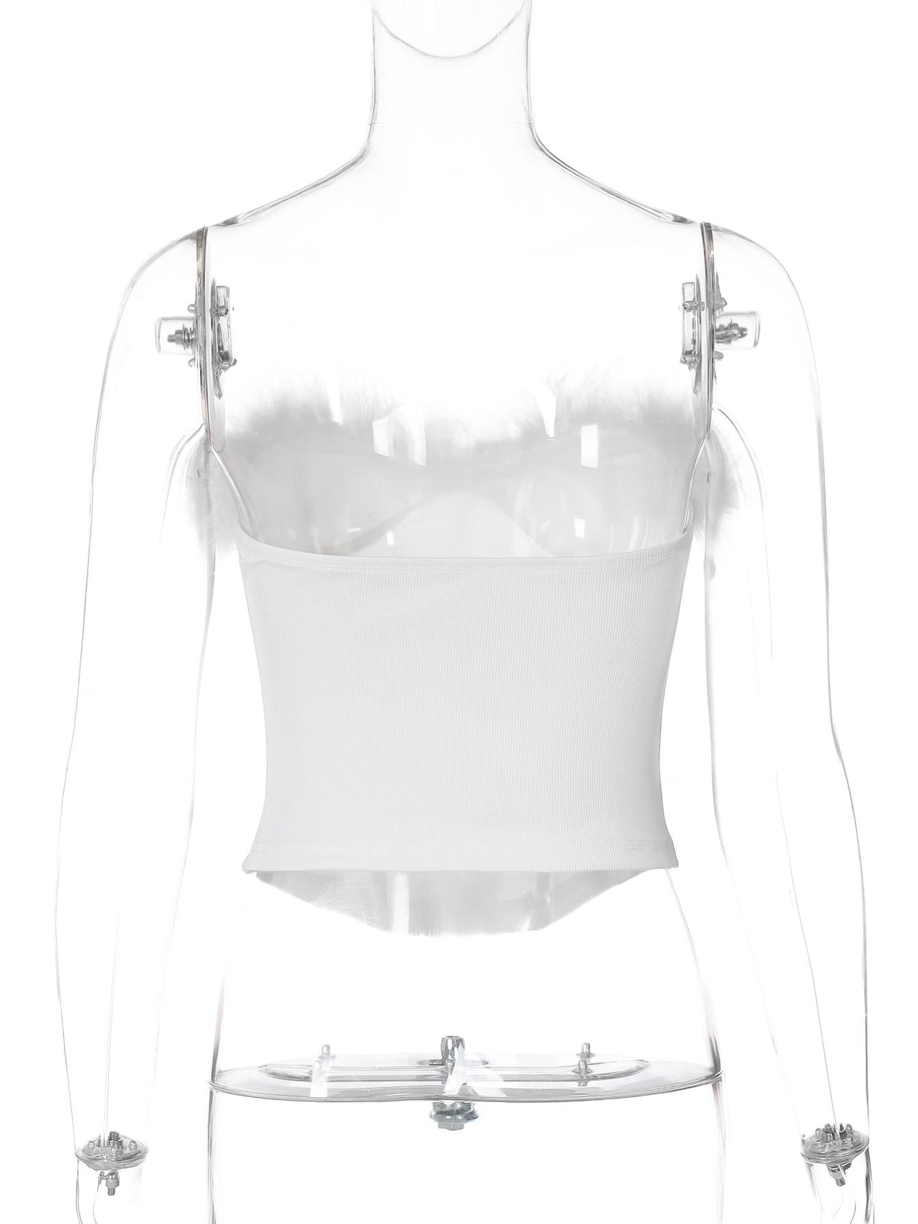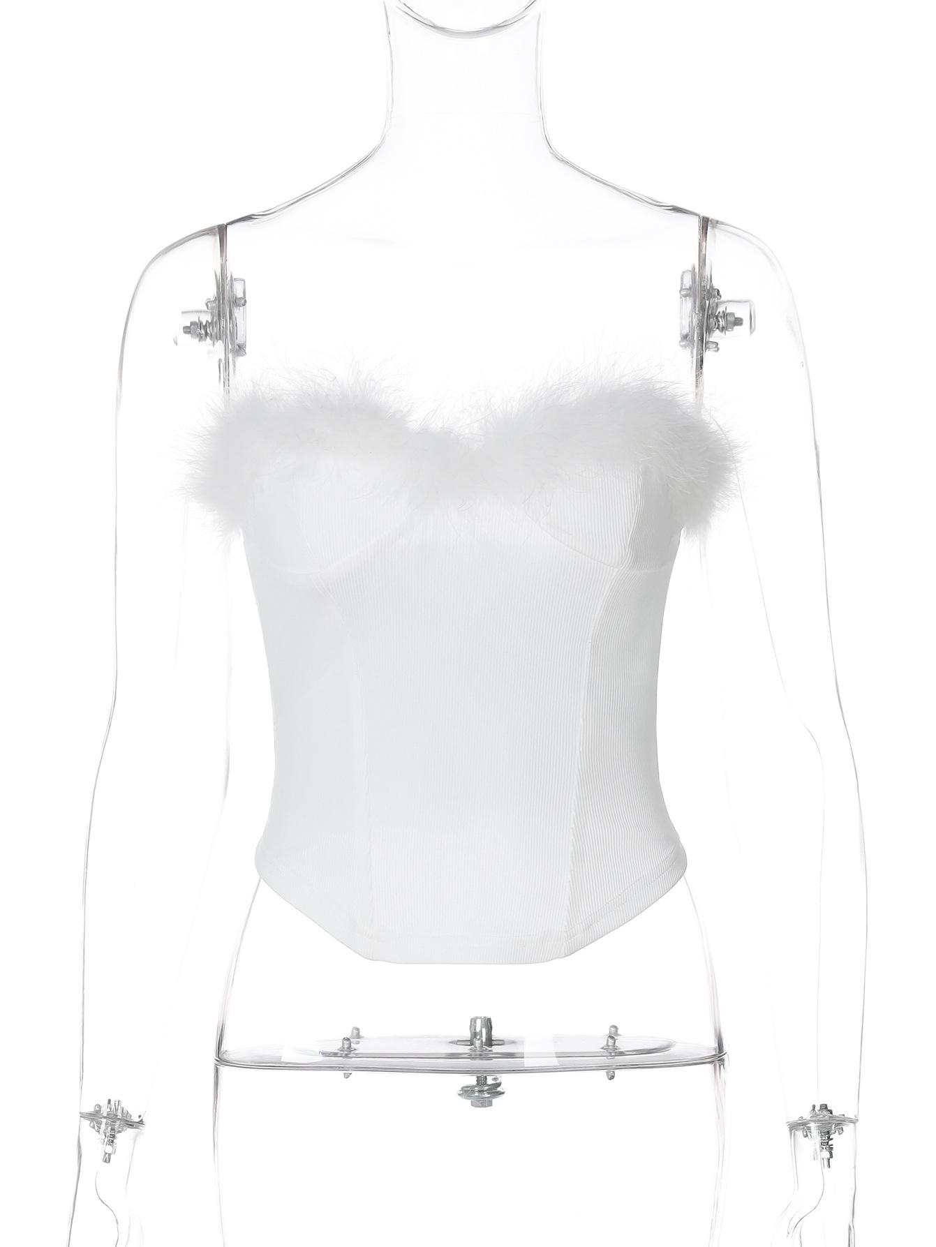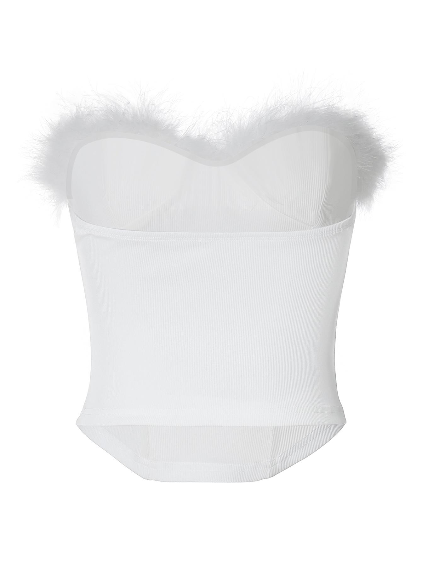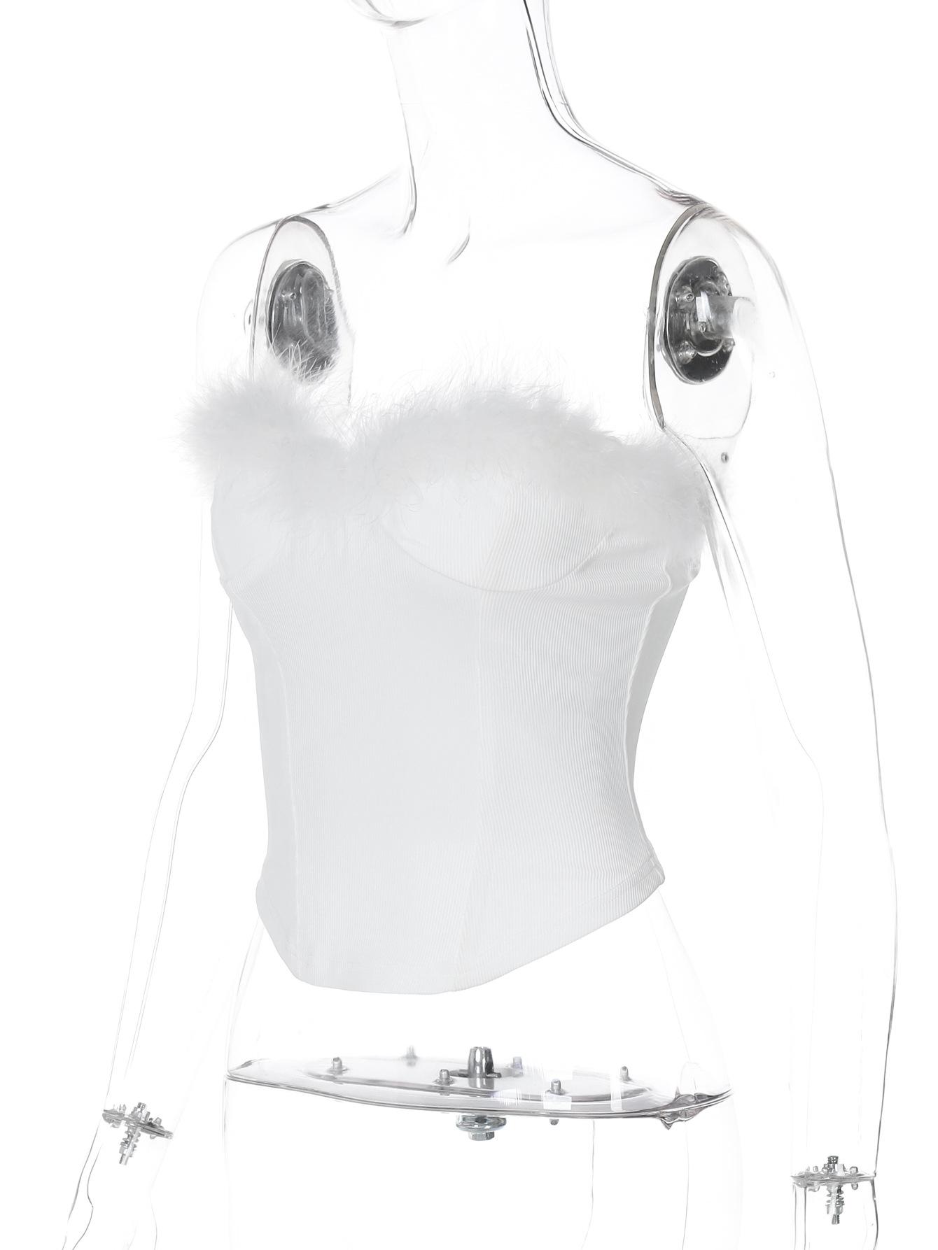 Ropa exterior de primavera y verano 2025 para mujeres europeas y americanas, sexy, de encaje, escote bajo, sin espalda, con plumas, aro de acero, espina de pescado, sexy, sin tirantes