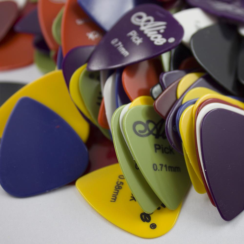 Para pedidos de 2000 púas o más, admitimos impresión, código QR, LOGOTIPO, patrón, perforación, etc. Si la cantidad es grande, puede hacer sus propias púas de color.