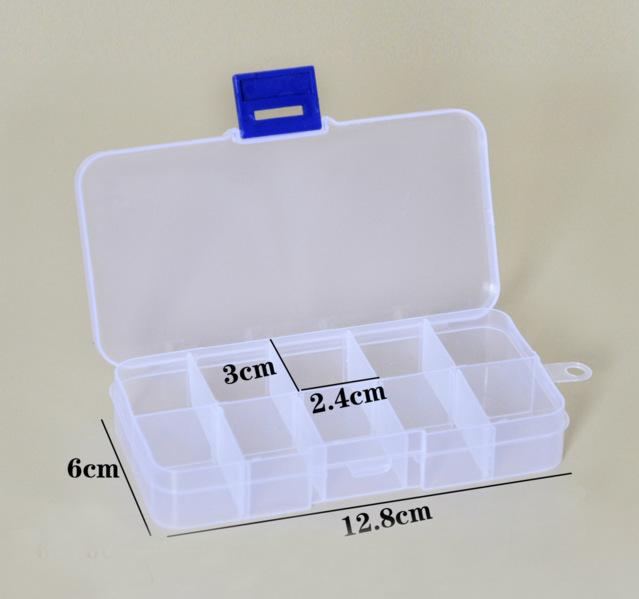 Caja de diez compartimentos altamente transparente tamaño: (20-100 piezas usan esta caja)
