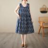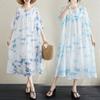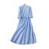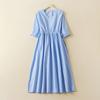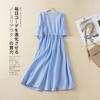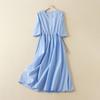 Vestido de verano 2024 de algodón y lino, suelto, artístico, de manga corta, con escote en V y cintura media para mujer.