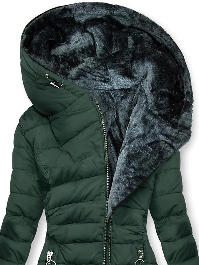 2024 Amazon Invierno Cálido Cuello de Piel Chaqueta Acolchada de Algodón para Mujer con Cremallera Manga Larga Ajustada Chaqueta Acolchada de Algodón Abrigo con Capucha