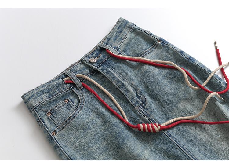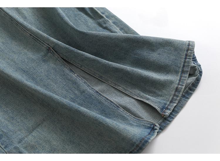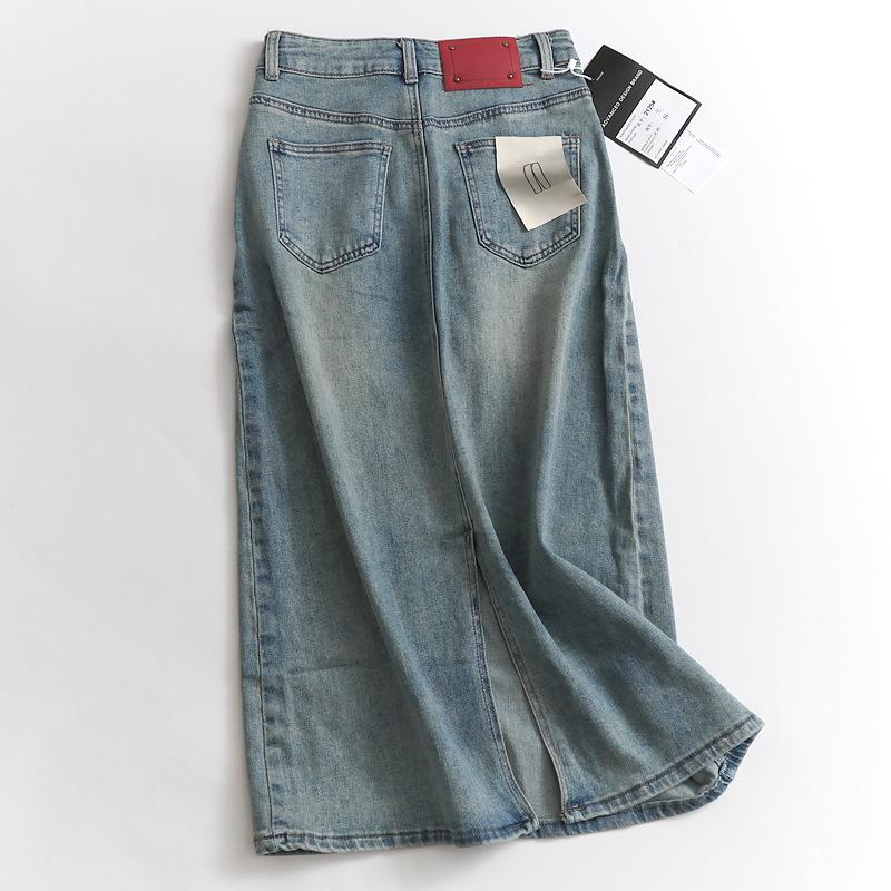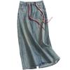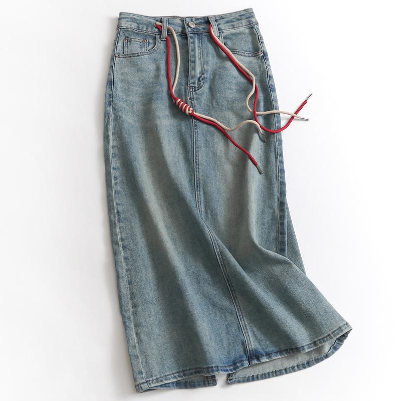 Falda de mezclilla nacional de cintura alta con abertura trasera para mujer, falda recta de paso con cordón retro para primavera y verano