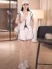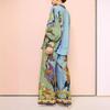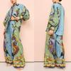 Traje de dos piezas de encaje festivo de manga abullonada estampada personalizada de moda de estación independiente de otoño 2023 europea y americana transfronteriza para mujer