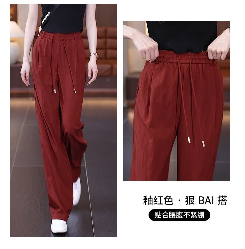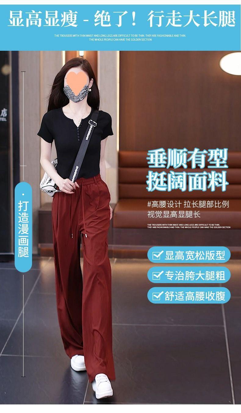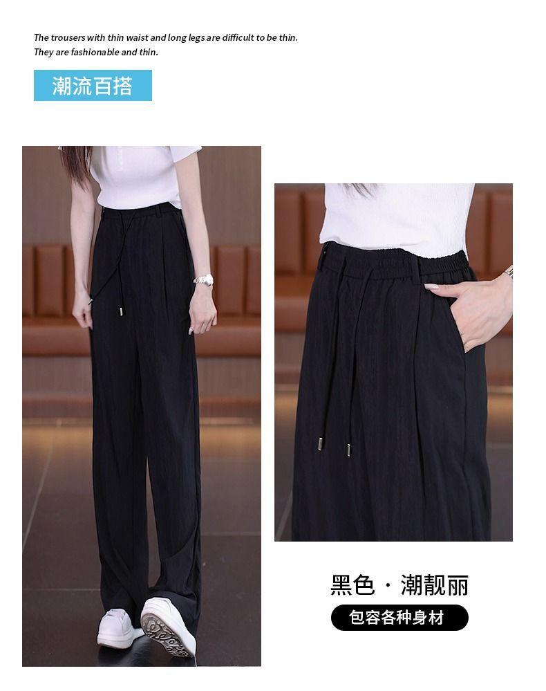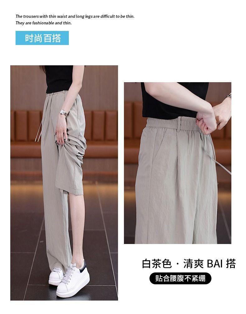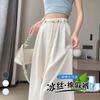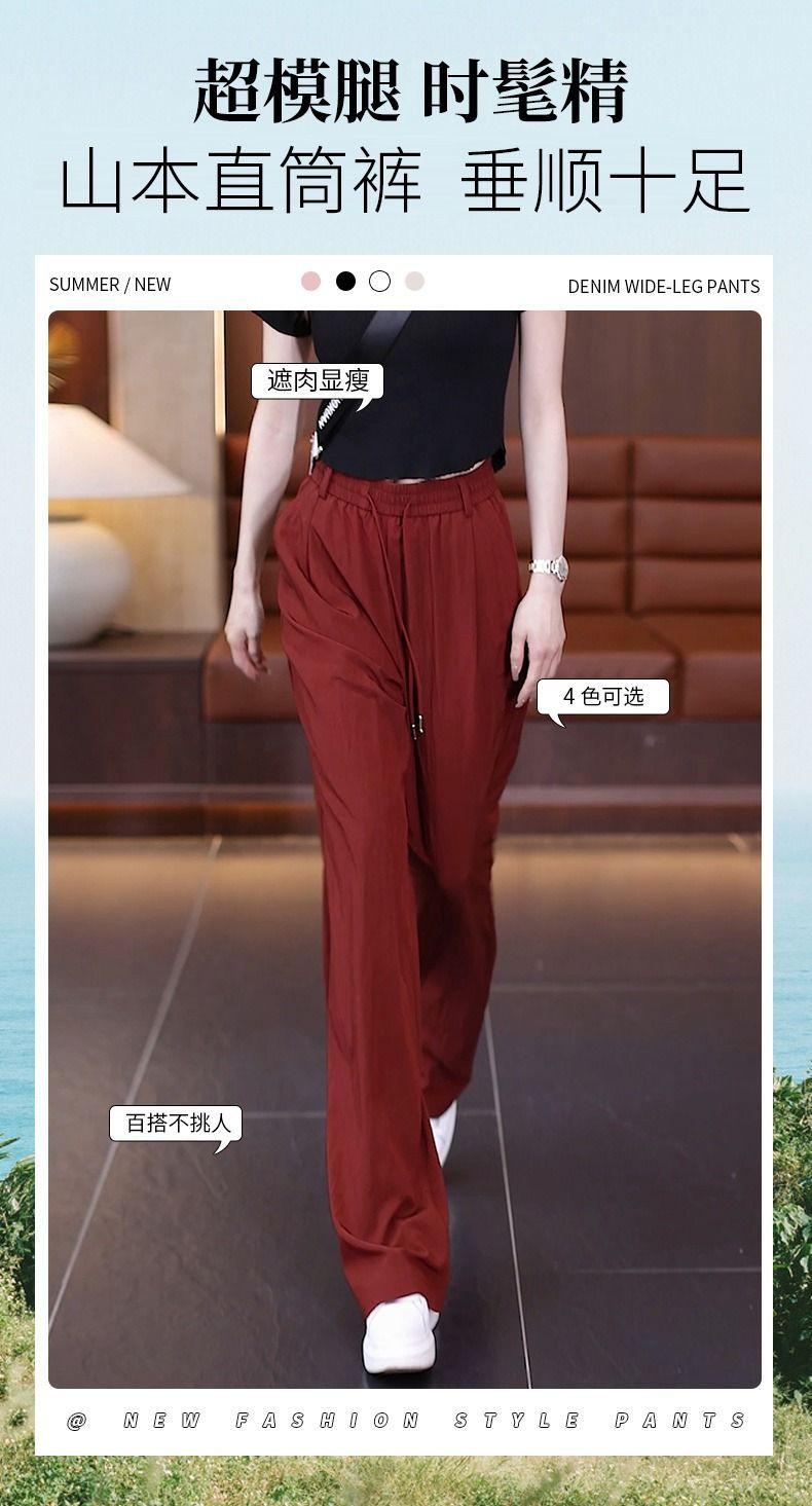 Pantalones de Pierna Ancha de Seda Helada para Mujer 2025 Verano Nuevo Elástico Cintura Alta Holgado Adelgazante Algodón y Lino Delgados Pierna Recta Pantalones Yamamoto