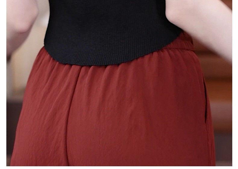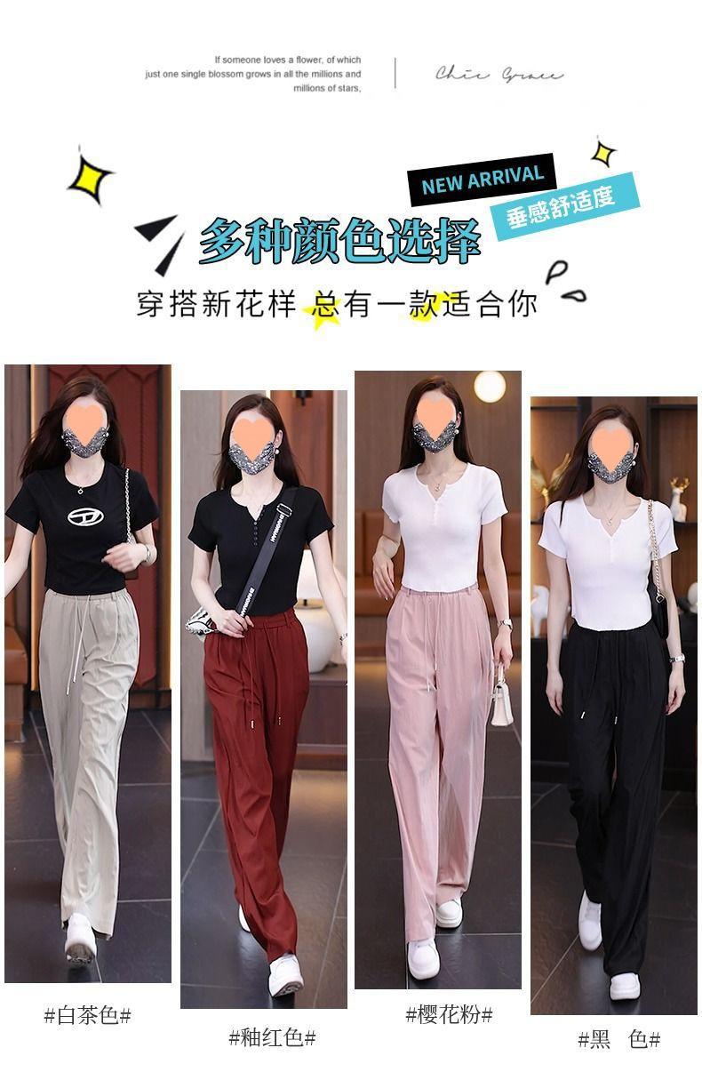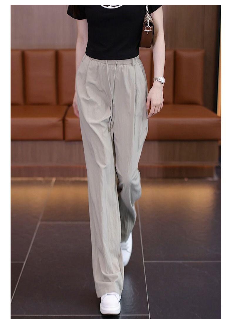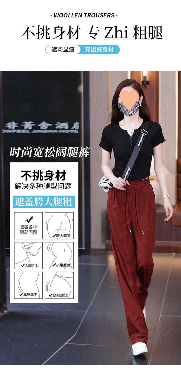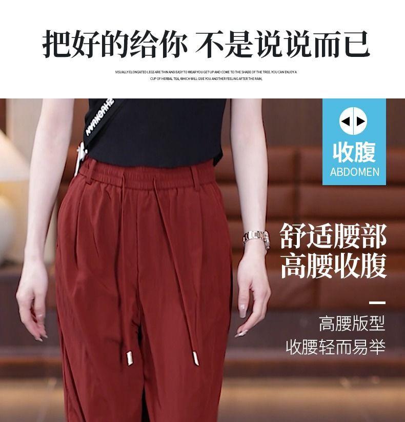 Pantalones de Pierna Ancha de Seda Helada para Mujer 2025 Verano Nuevo Elástico Cintura Alta Holgado Adelgazante Algodón y Lino Delgados Pierna Recta Pantalones Yamamoto