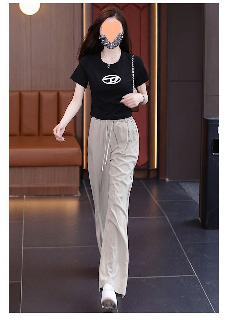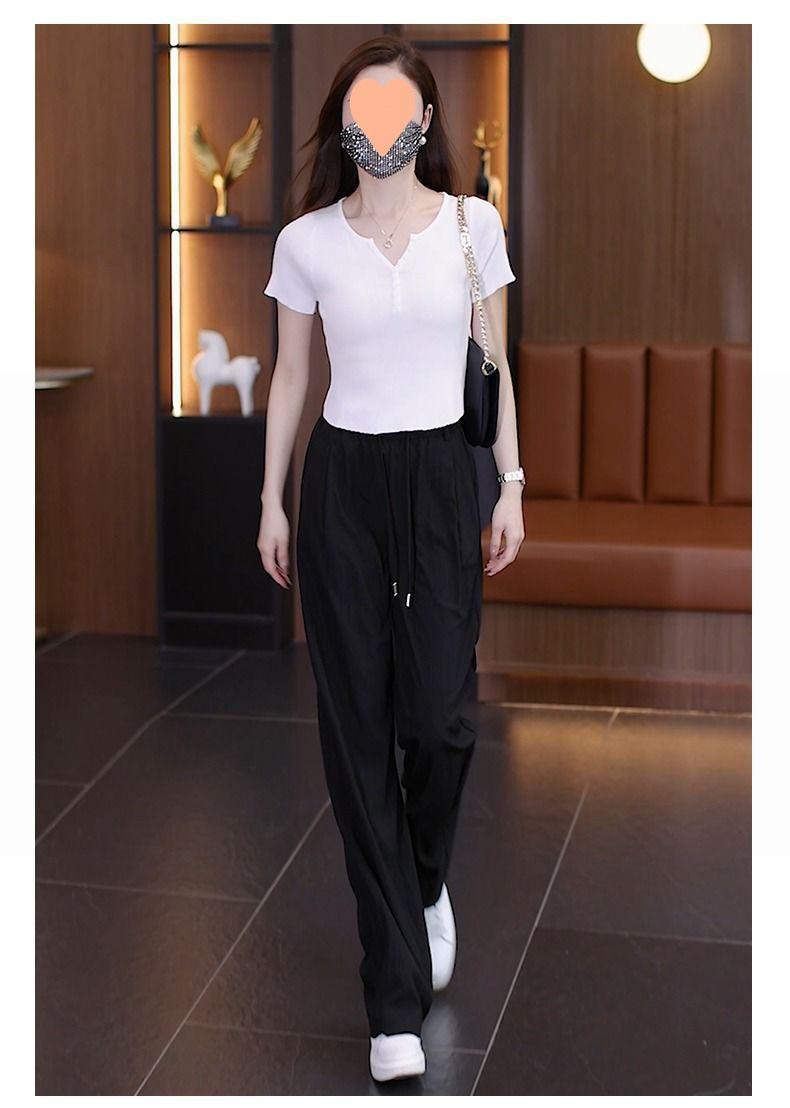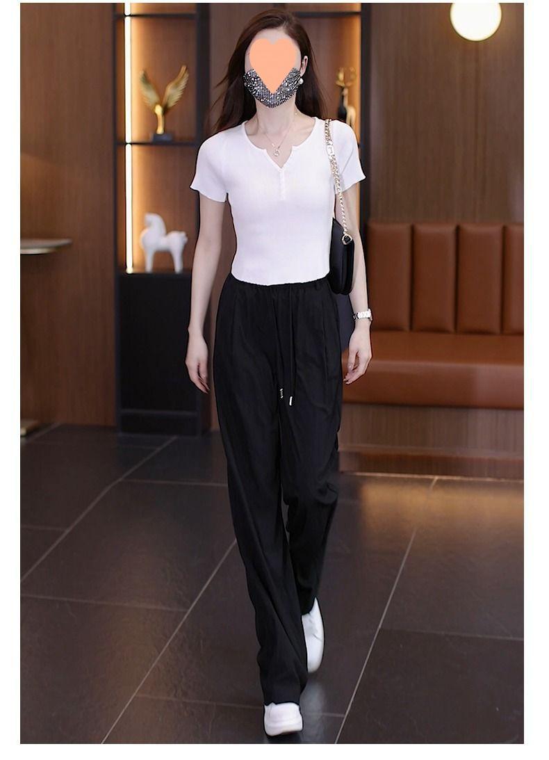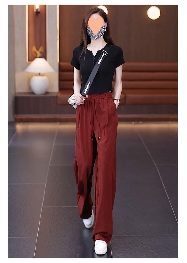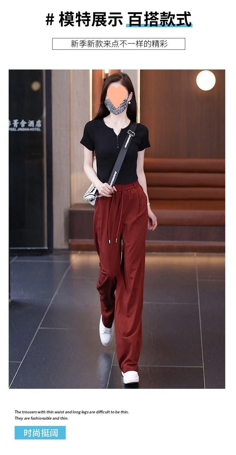 Pantalones de Pierna Ancha de Seda Helada para Mujer 2025 Verano Nuevo Elástico Cintura Alta Holgado Adelgazante Algodón y Lino Delgados Pierna Recta Pantalones Yamamoto