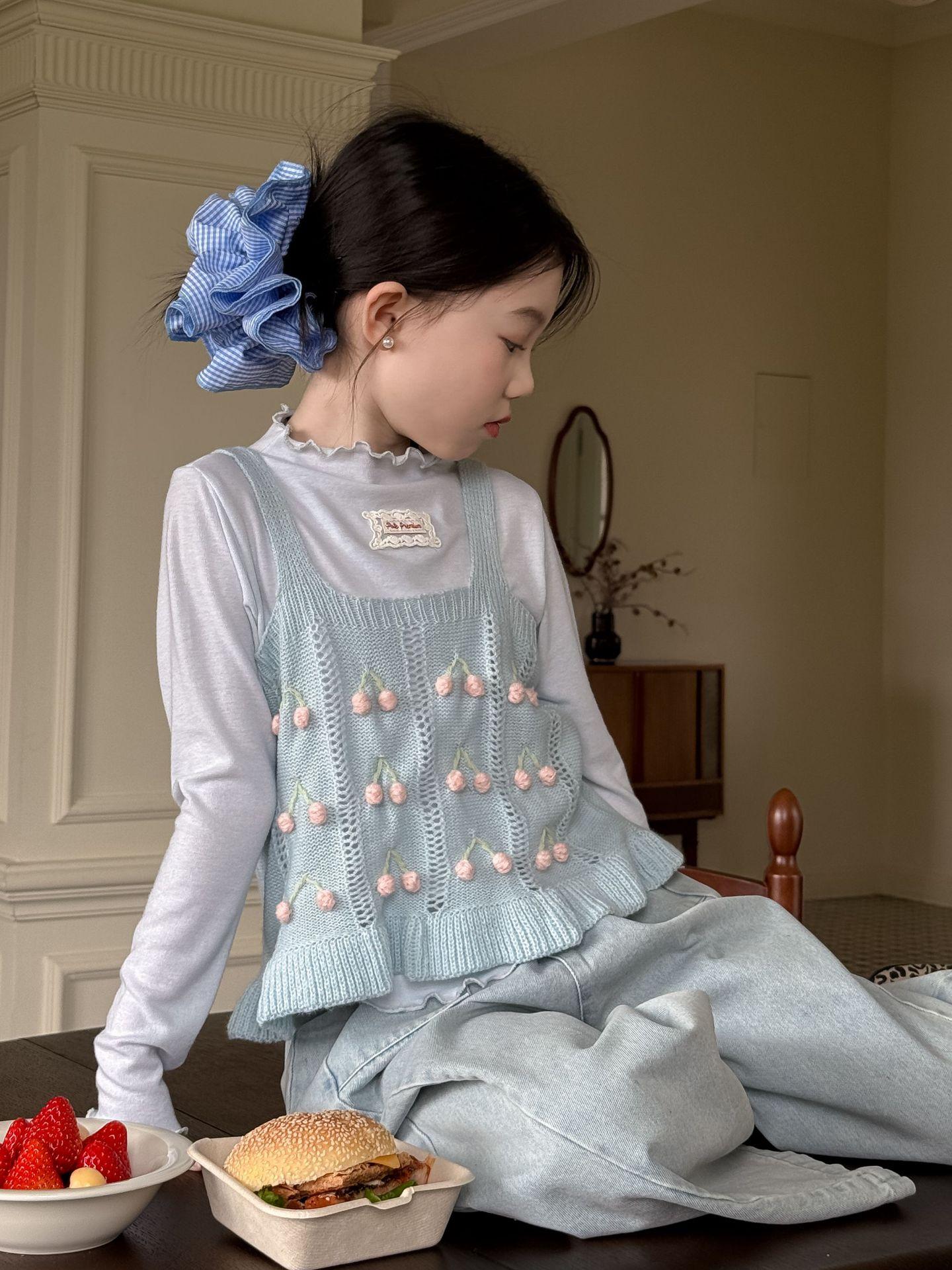 Roupas infantis transfronteiriças 2025 primavera novas meninas colete suéter top desenho animado colete estilo estrangeiro maré