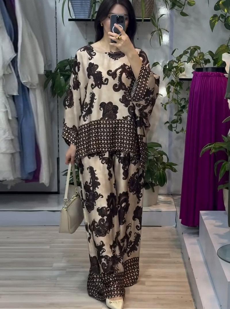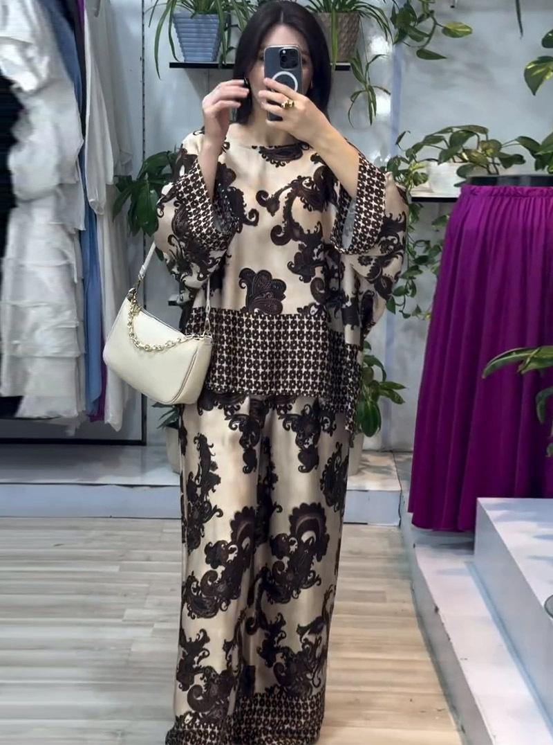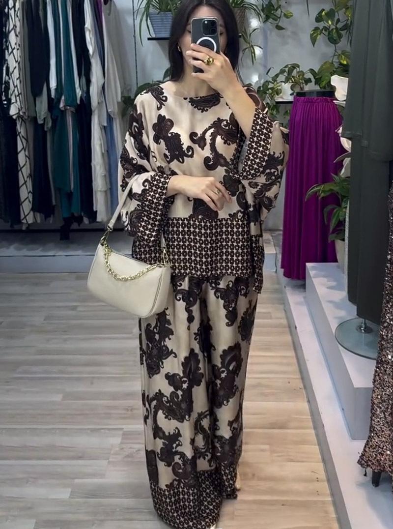 Conjunto de dos piezas para mujer de otoño 2024, nuevo de comercio exterior, estilo europeo y americano, posicionamiento estilo Amazon, tops y pantalones estampados