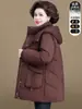Chaqueta con capucha de invierno para madres, de longitud media, nueva chaqueta acolchada de algodón gruesa de estilo occidental para otoño e invierno de 2024 para mujeres de mediana edad.
