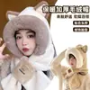 Bonita bufanda con orejas de zorro, gorro de lana gruesa de una pieza con forro polar para mujer, protección para los oídos a prueba de frío para invierno, conjunto de dos piezas para ciclismo.