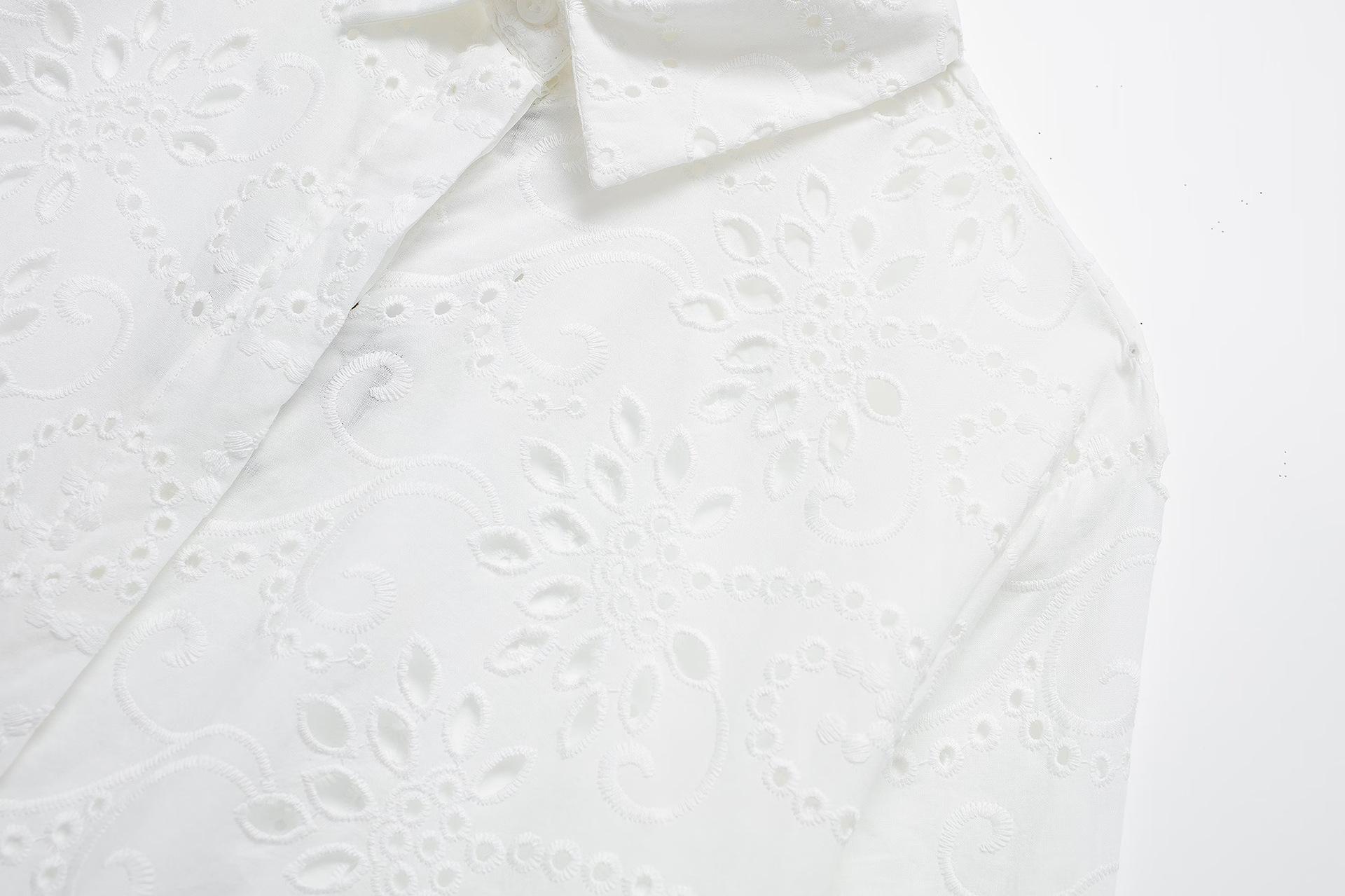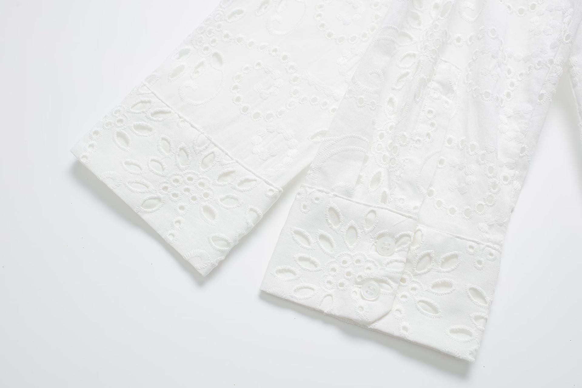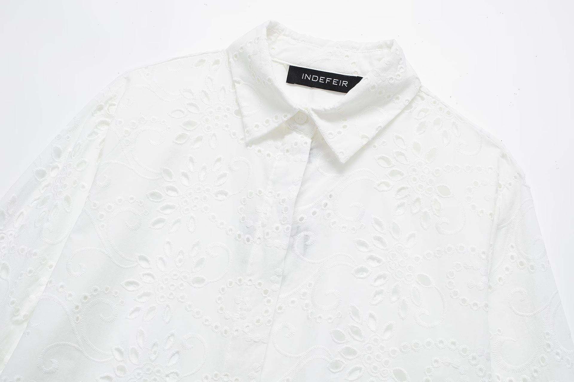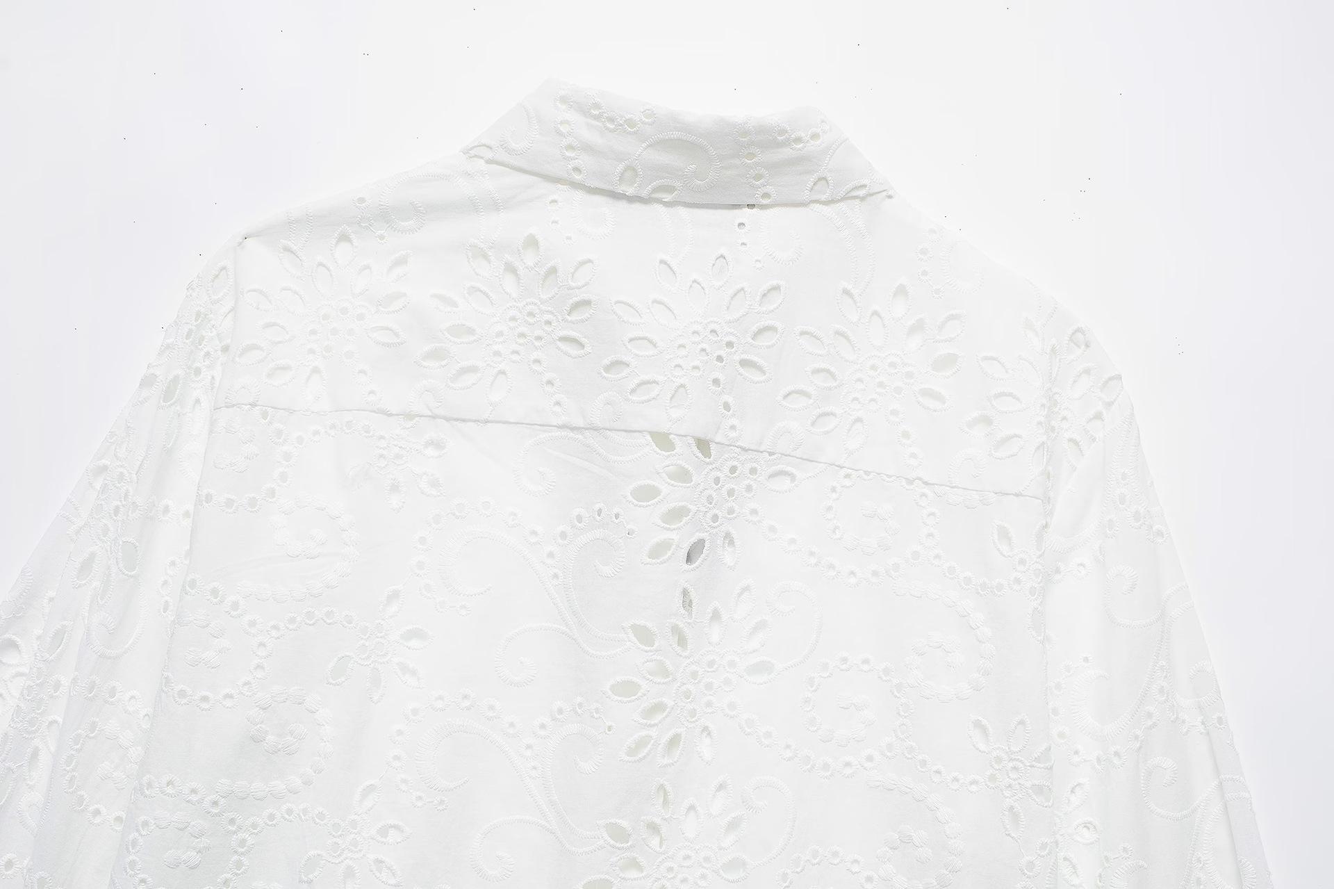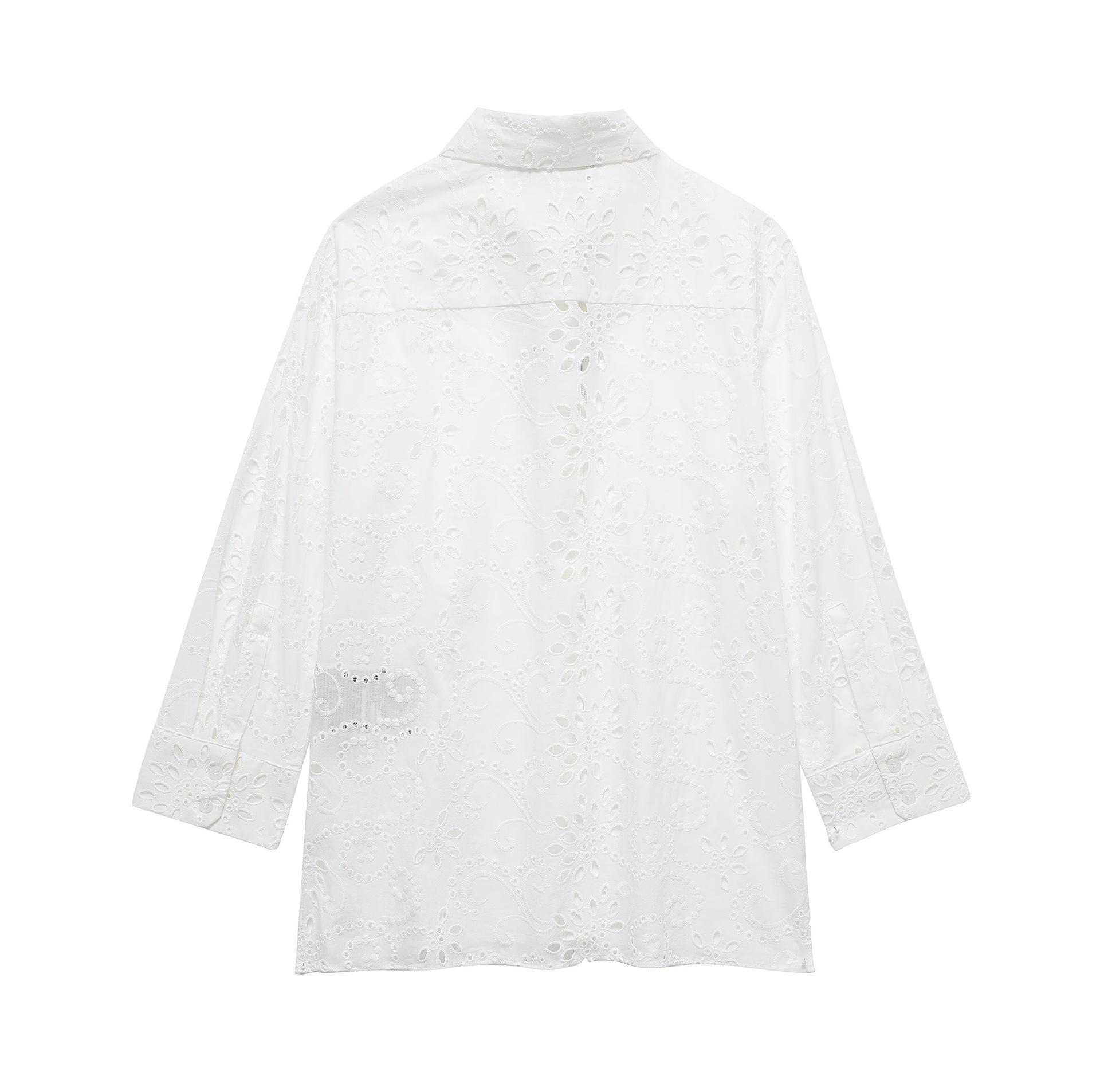 Blusa básica informal de manga larga blanca con bordado hueco, estilo europeo y americano, primavera/verano 2024, con solapa pequeña
