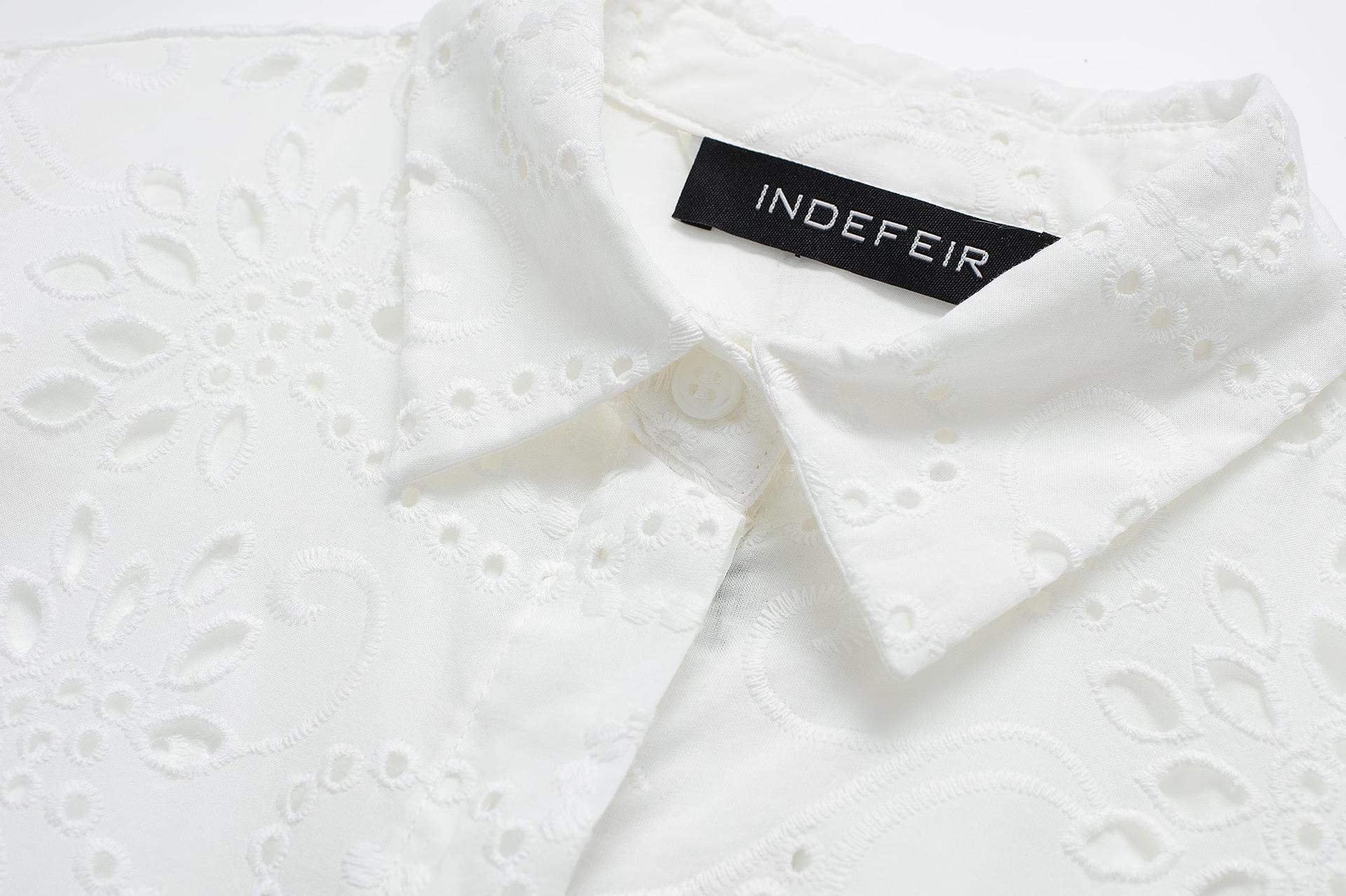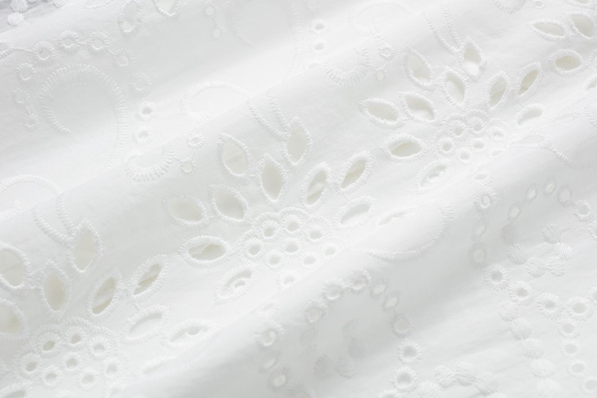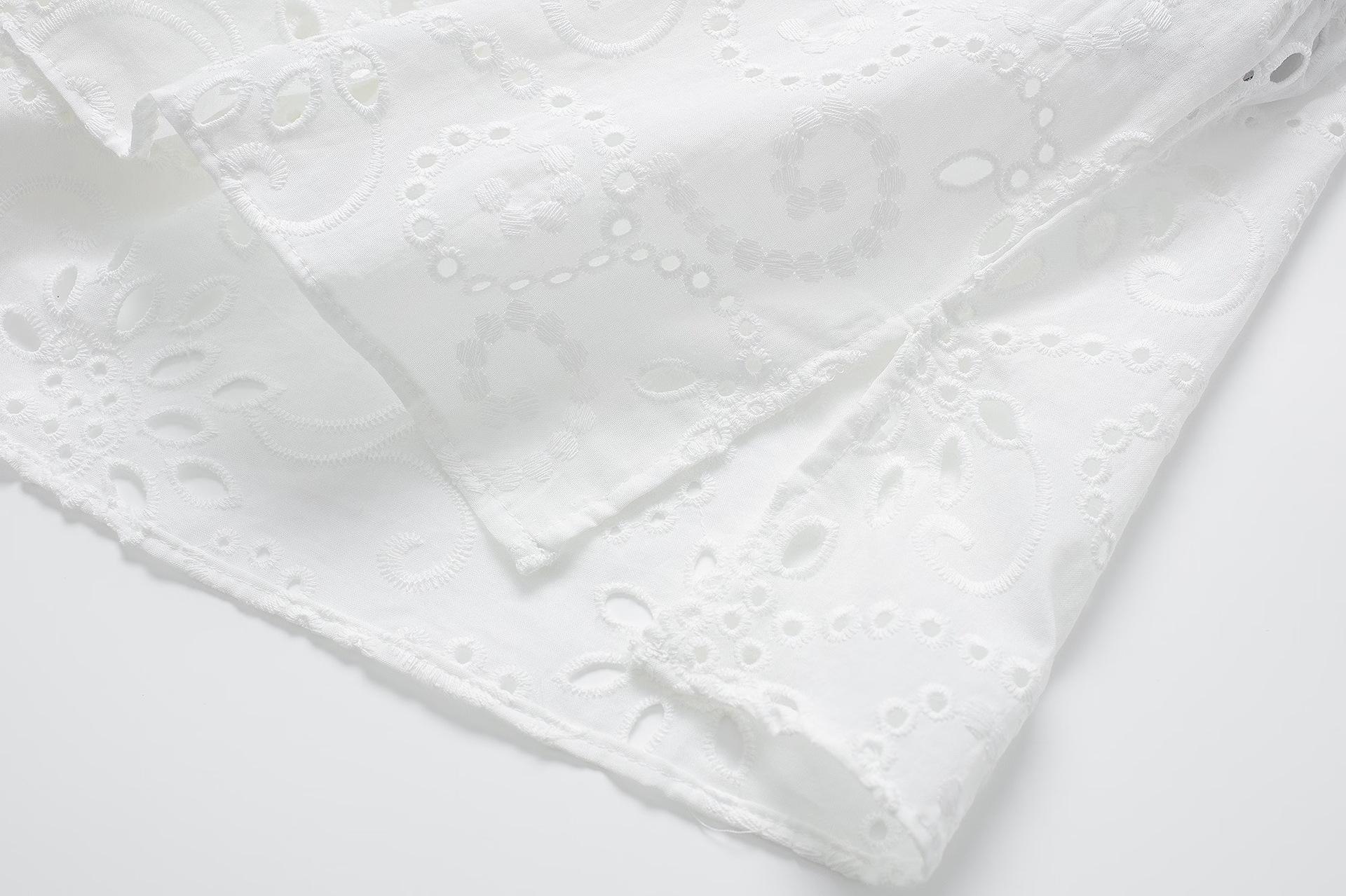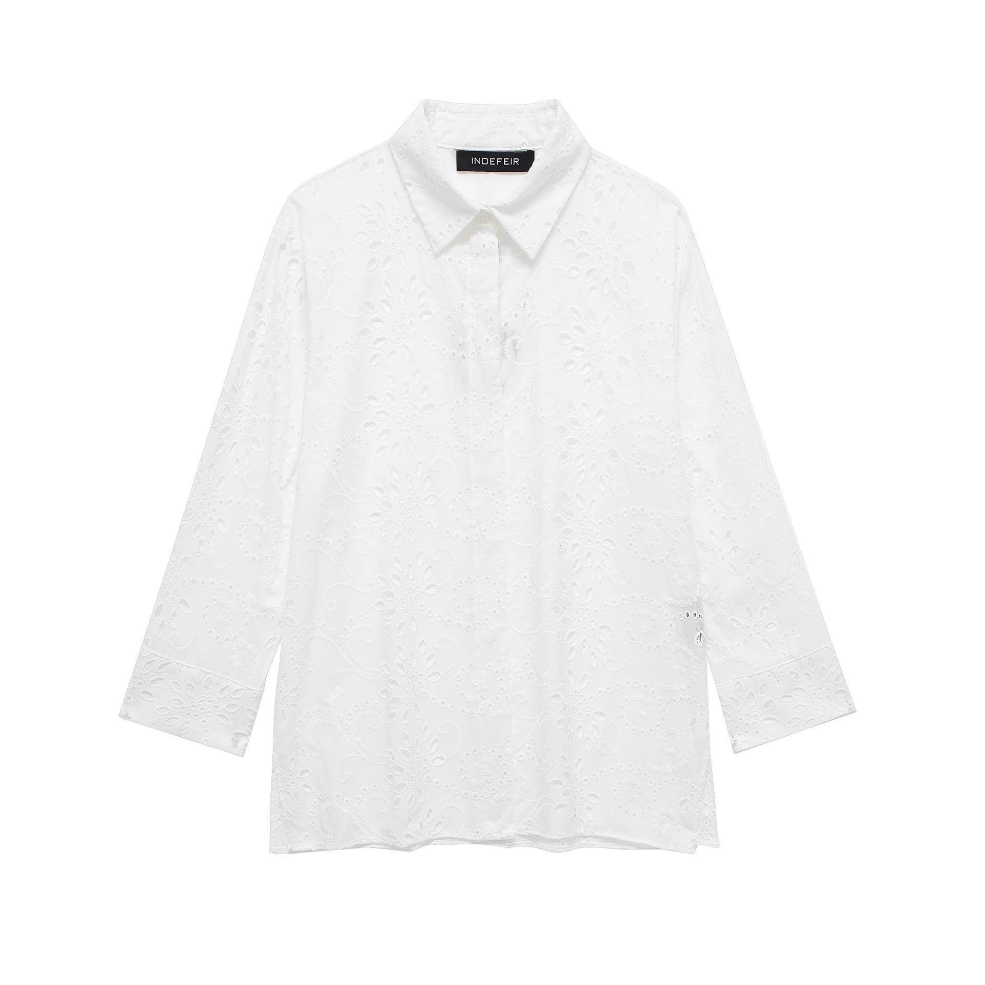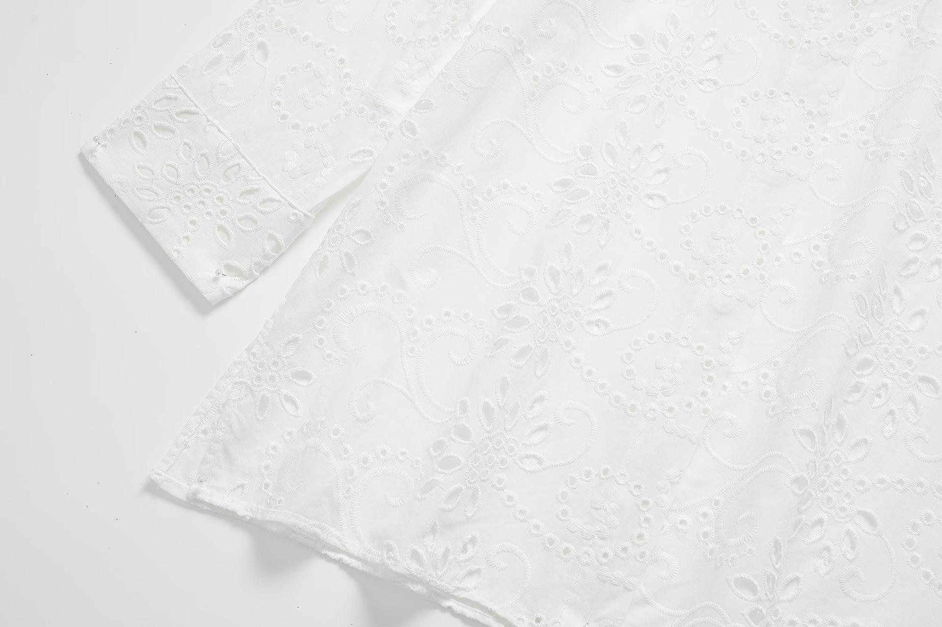 Blusa básica informal de manga larga blanca con bordado hueco, estilo europeo y americano, primavera/verano 2024, con solapa pequeña