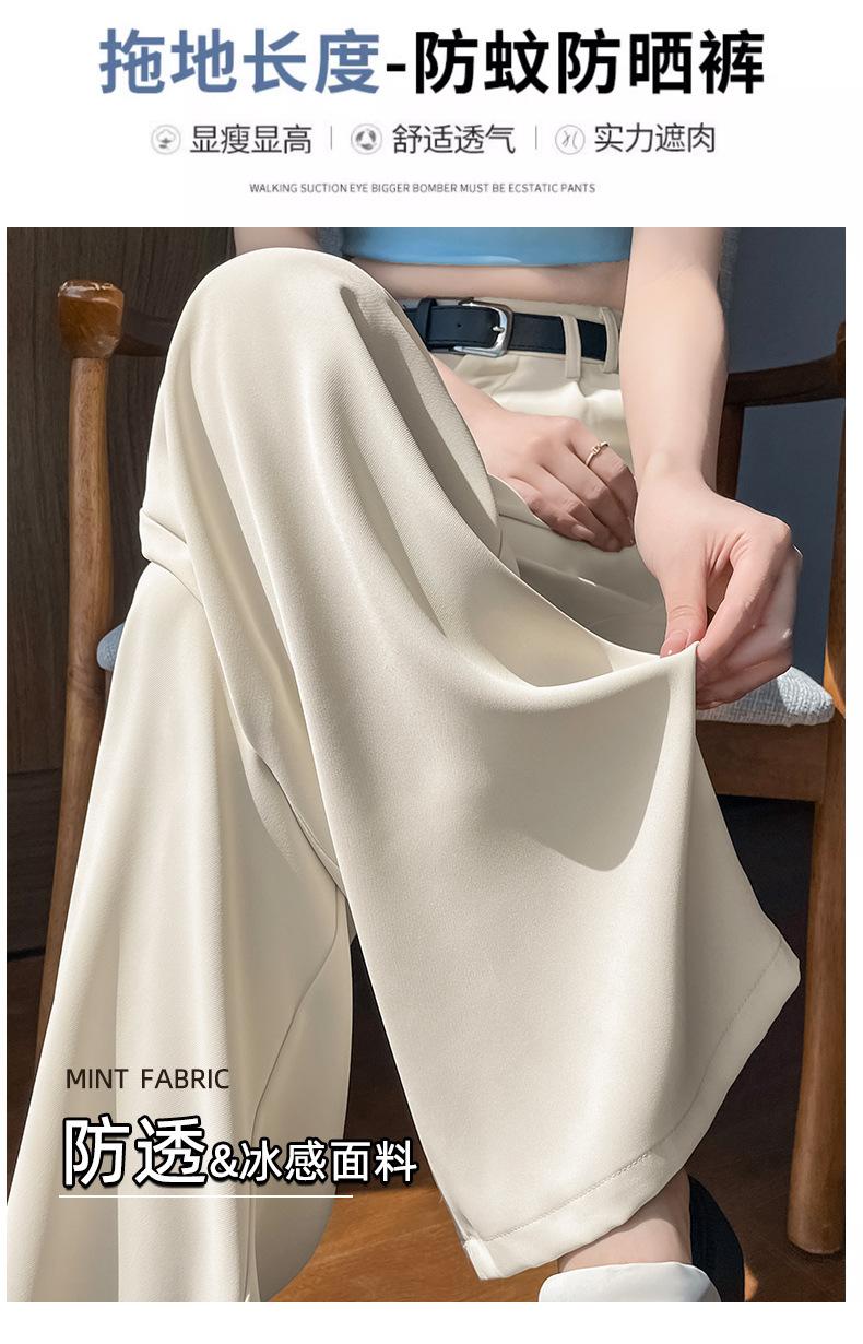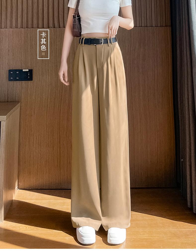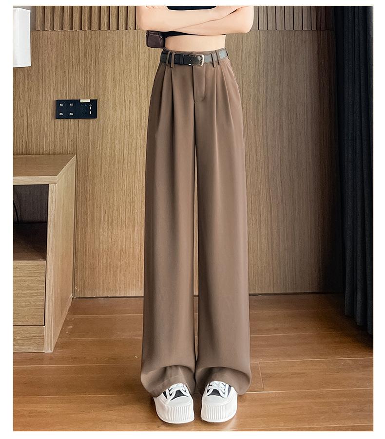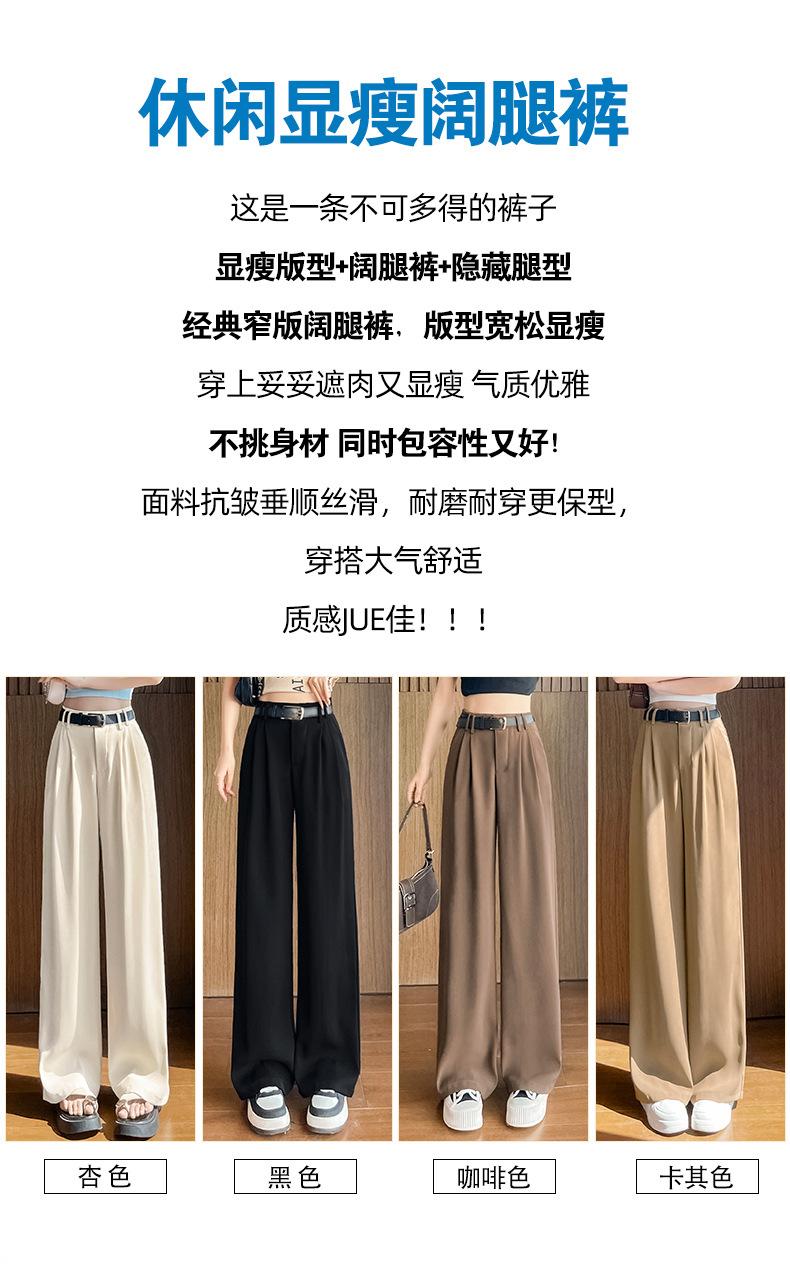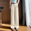 Pantalones de pierna ancha y estrecha para mujer, pantalón de verano, fino, recto, de cintura alta, informal, drapeado, 2024