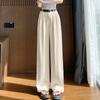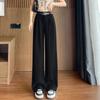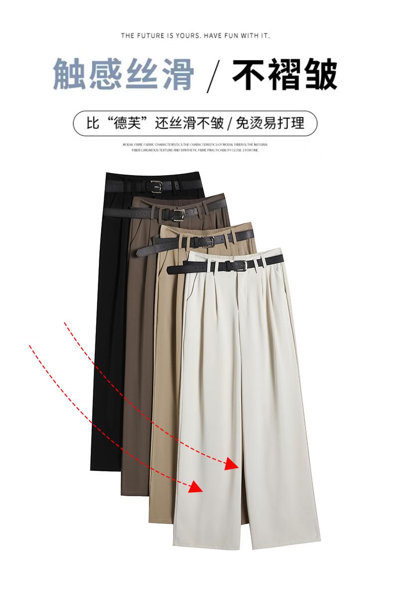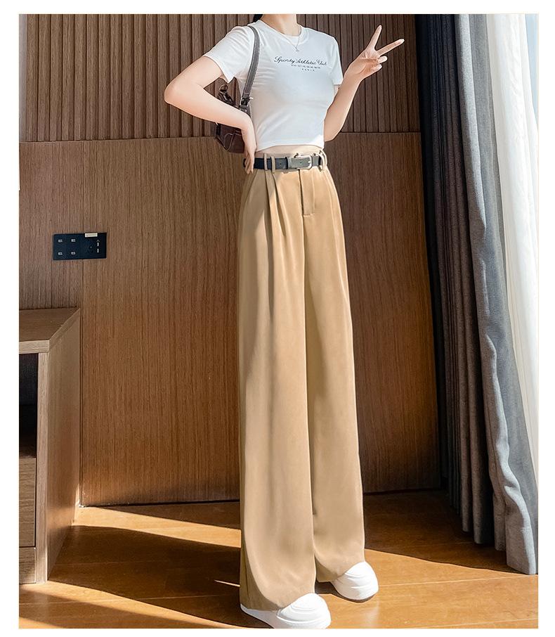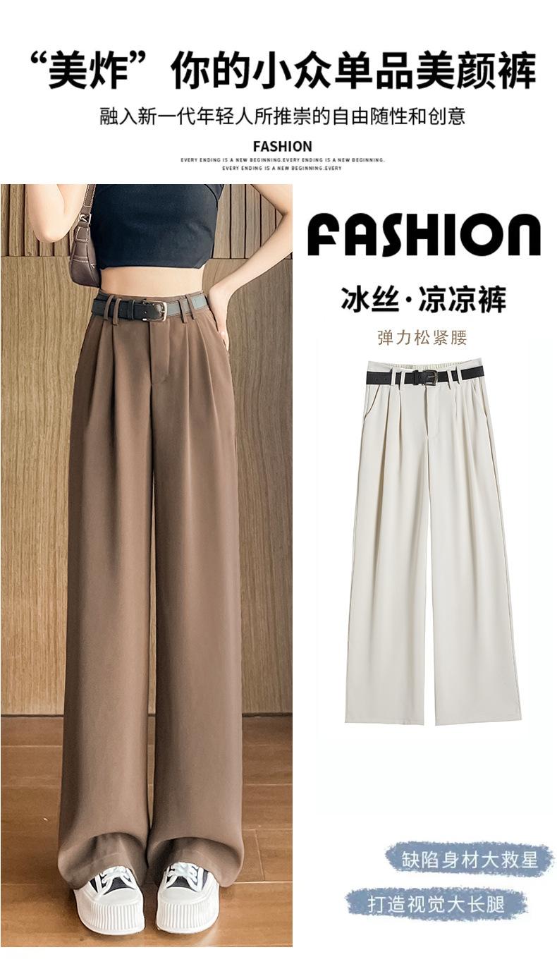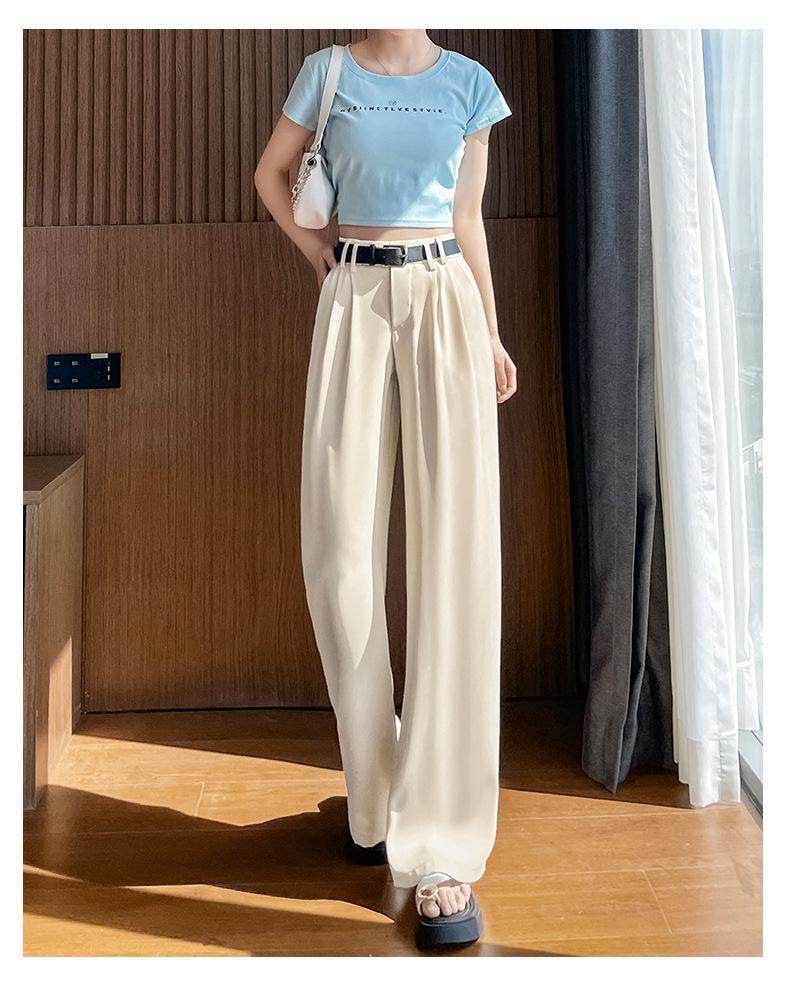 Pantalones de pierna ancha y estrecha para mujer, pantalón de verano, fino, recto, de cintura alta, informal, drapeado, 2024
