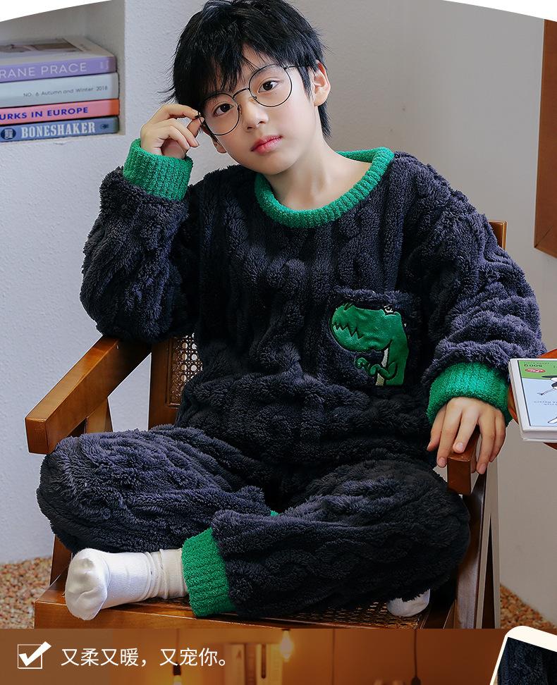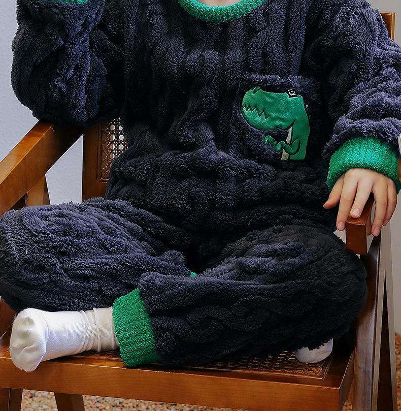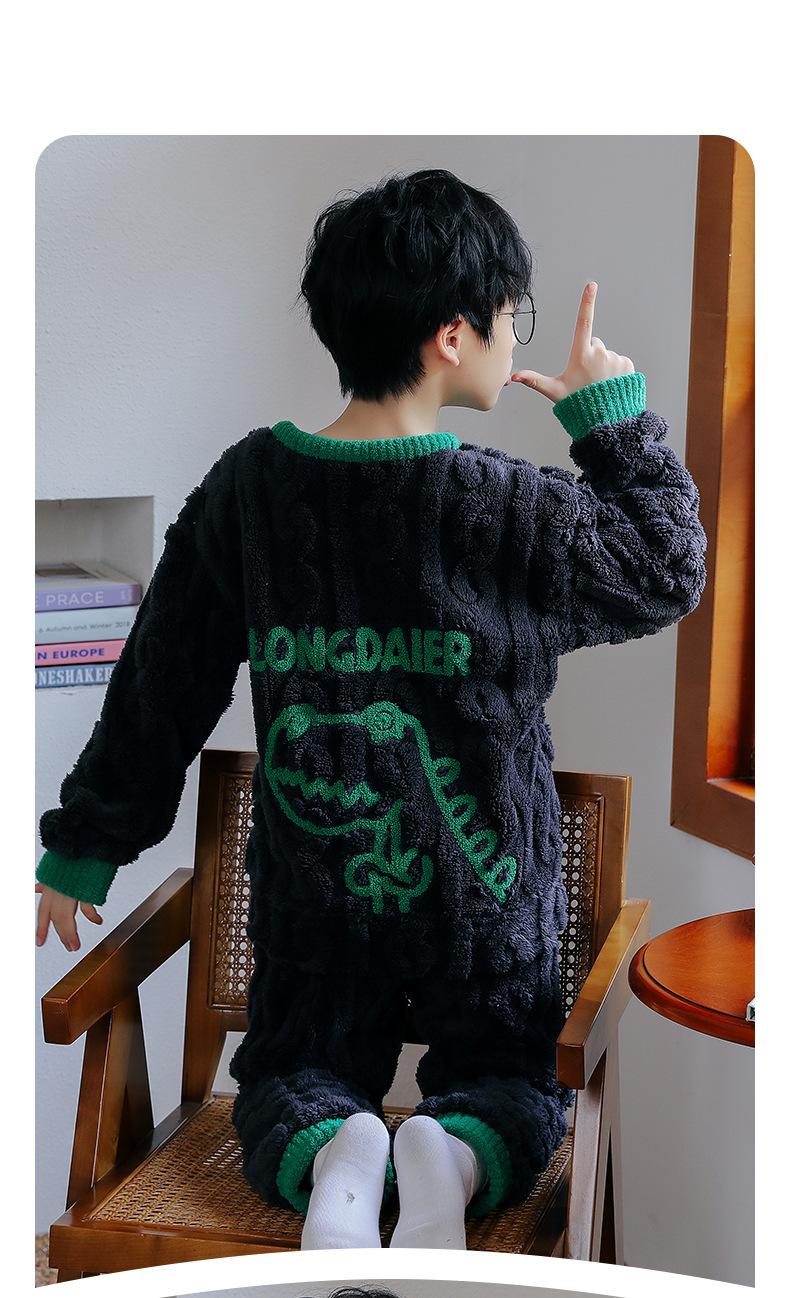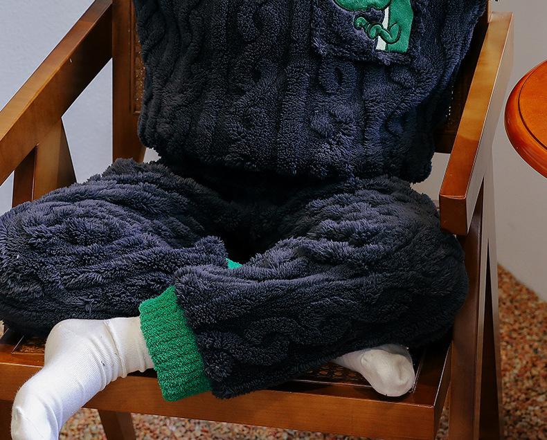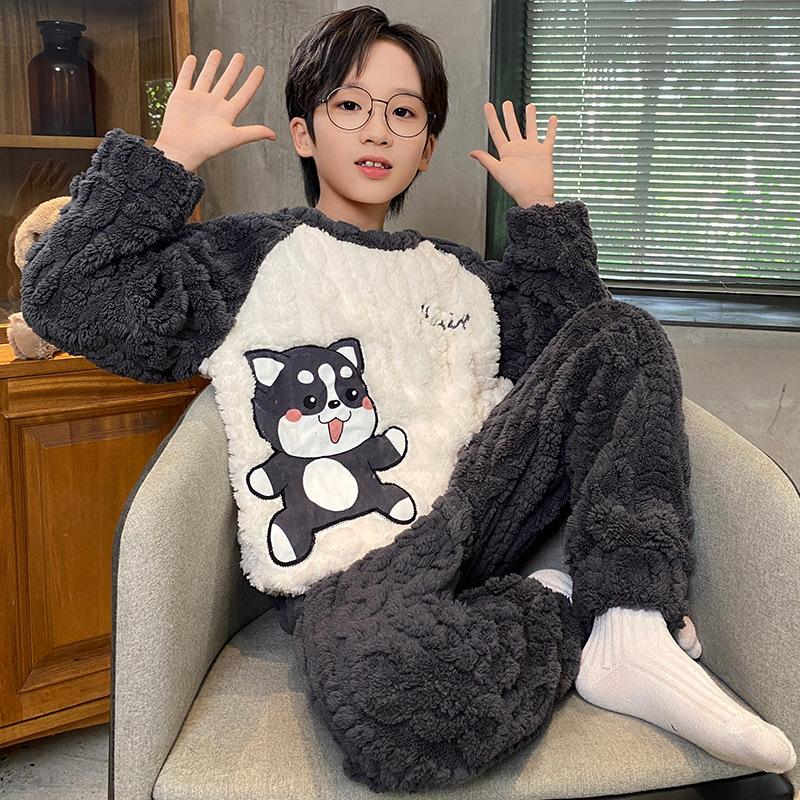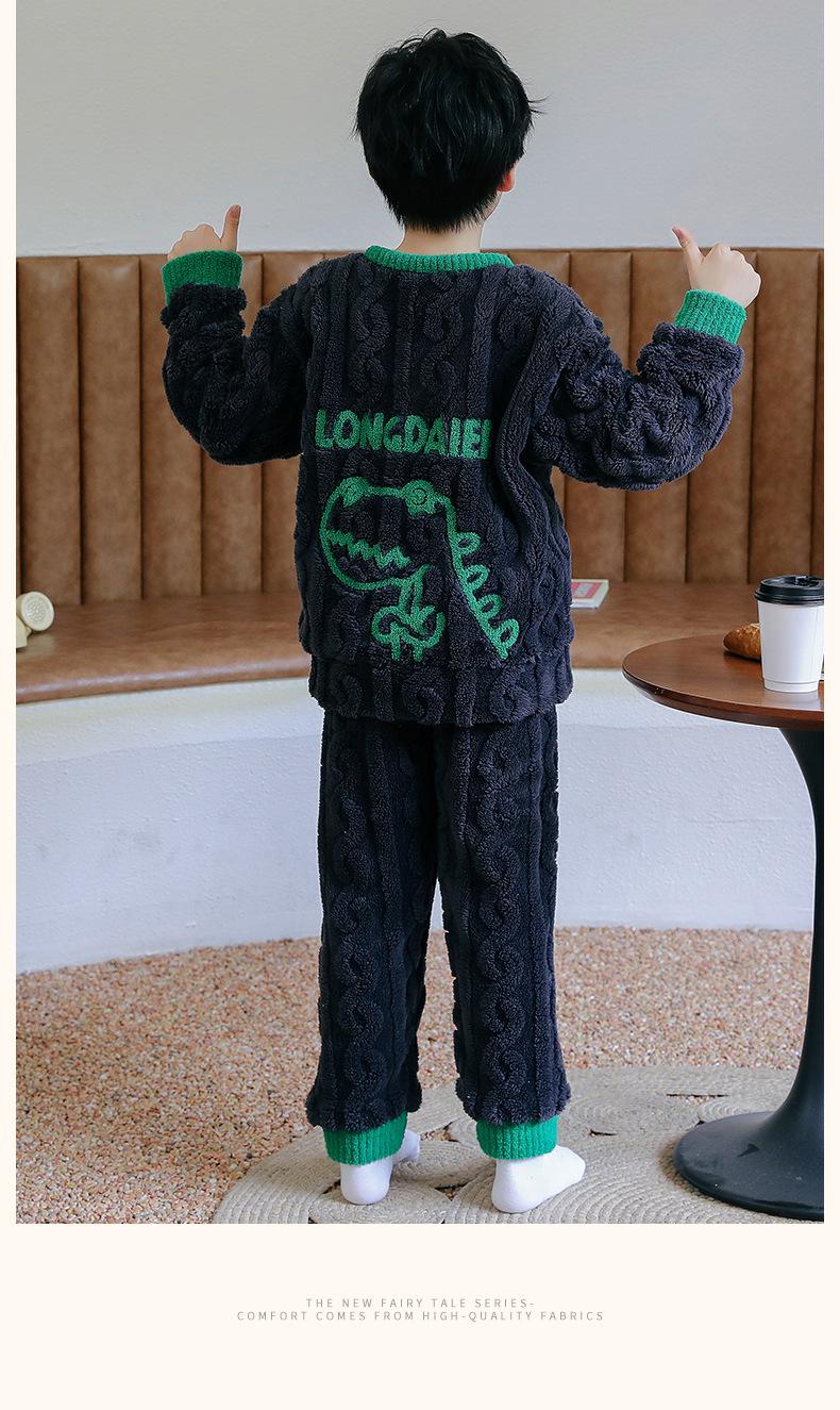 Pijamas de franela para niños, invierno, forro polar grueso, ropa de casa de lana coral para niños grandes, otoño e invierno.