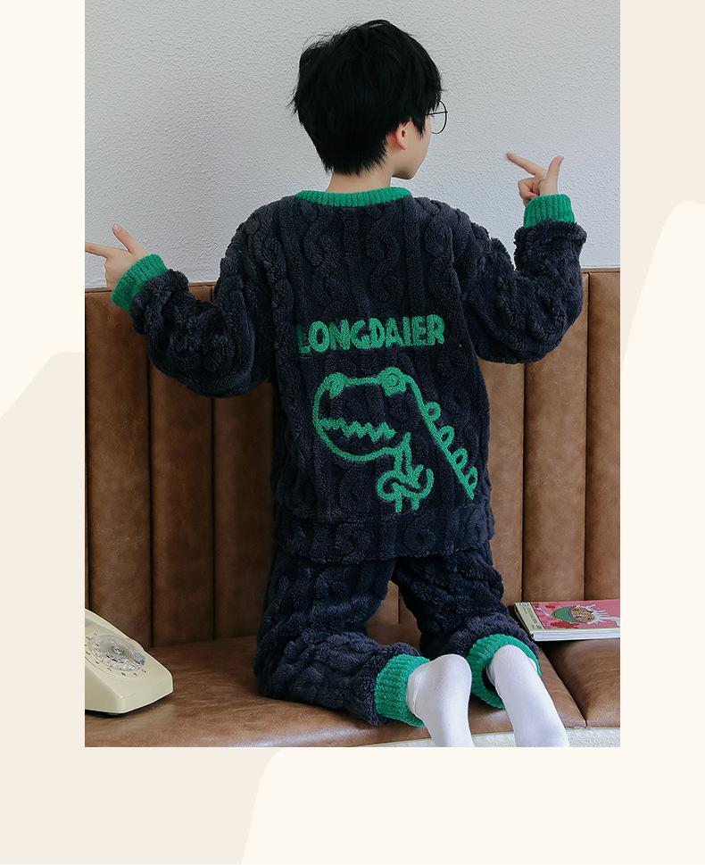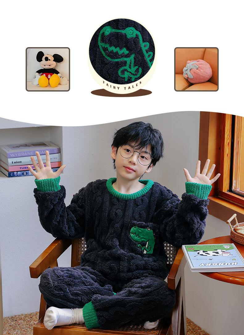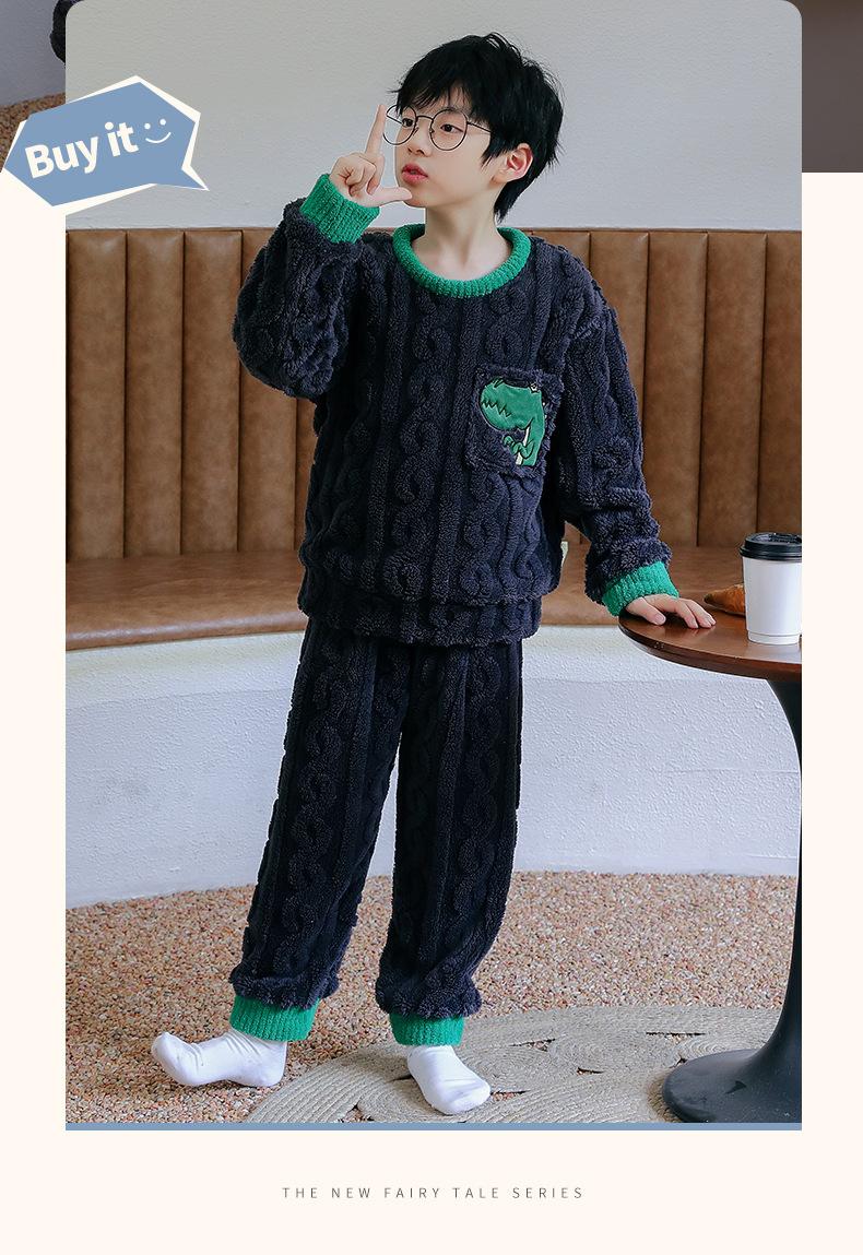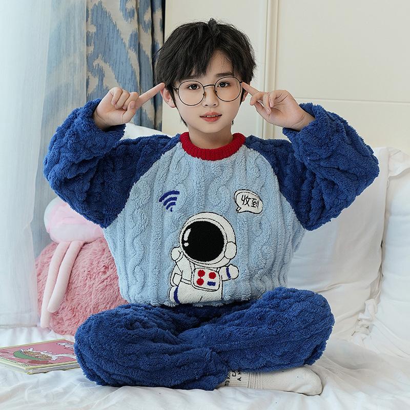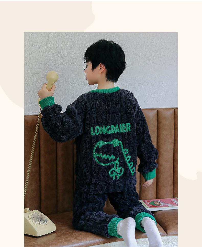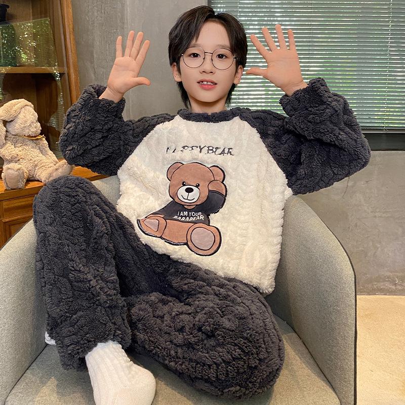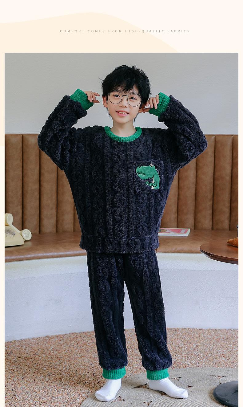 Pijamas de franela para niños, invierno, forro polar grueso, ropa de casa de lana coral para niños grandes, otoño e invierno.