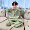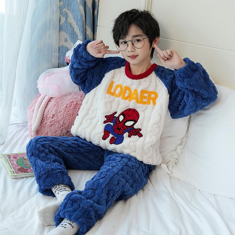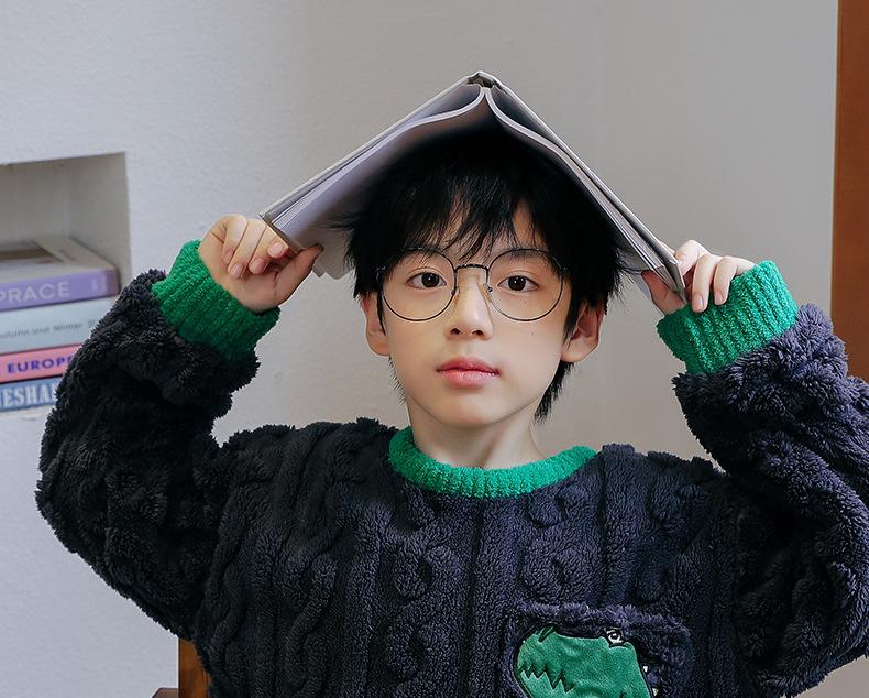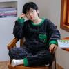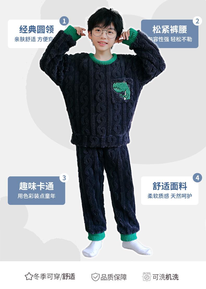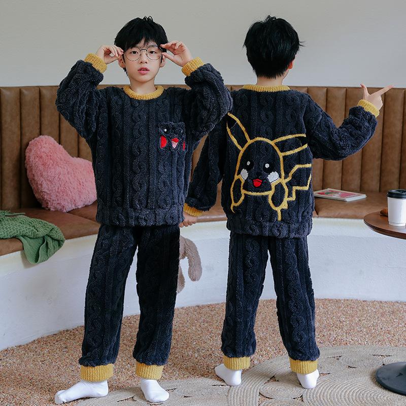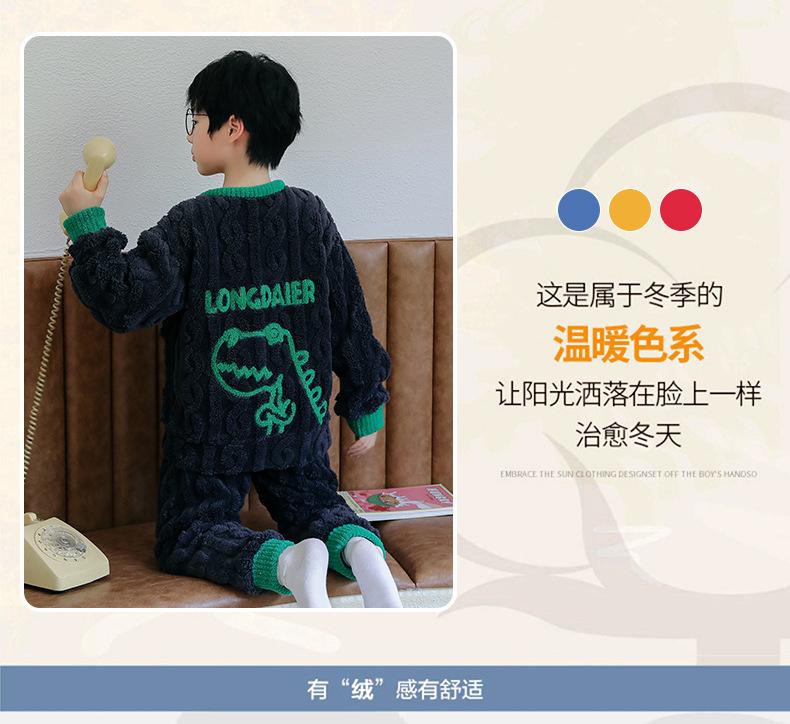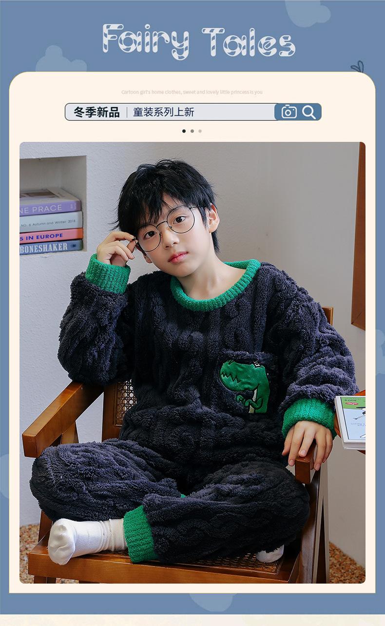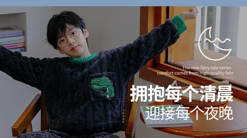 Pijamas de franela para niños, invierno, forro polar grueso, ropa de casa de lana coral para niños grandes, otoño e invierno.